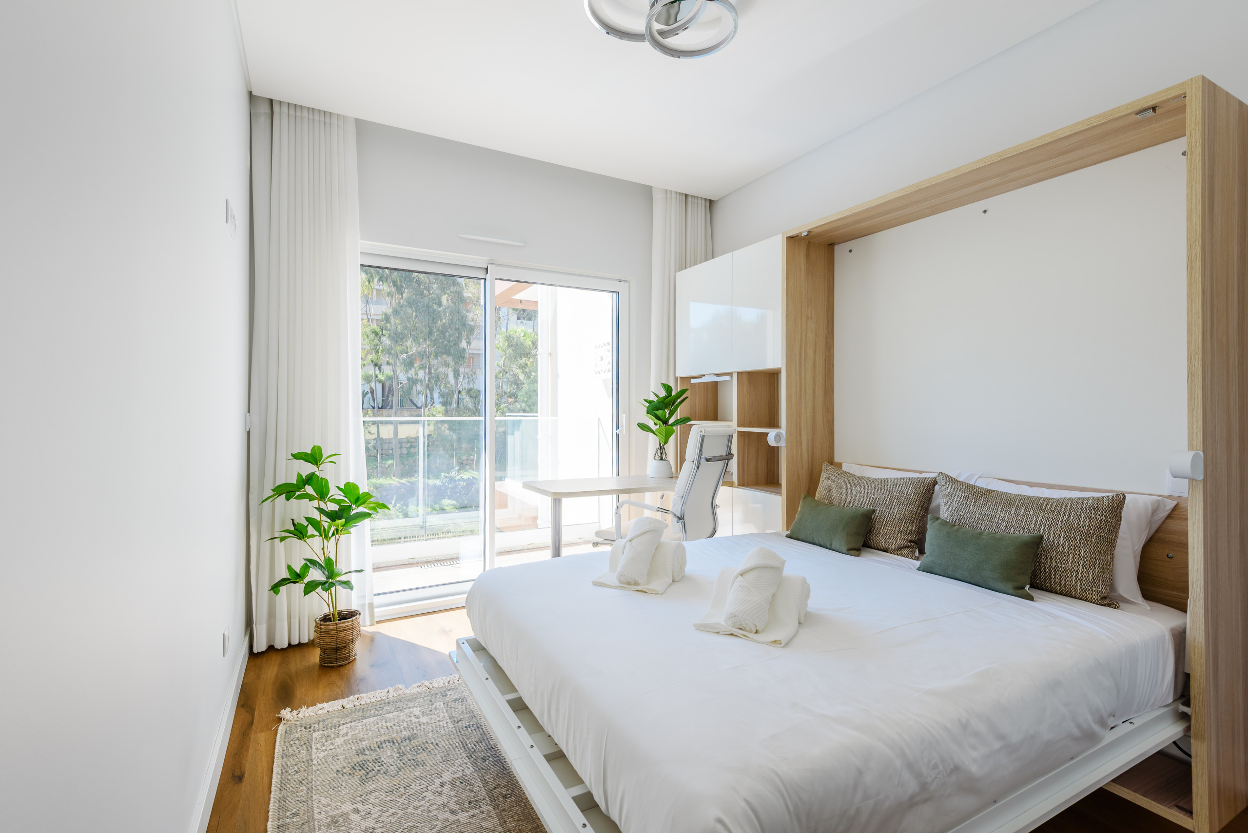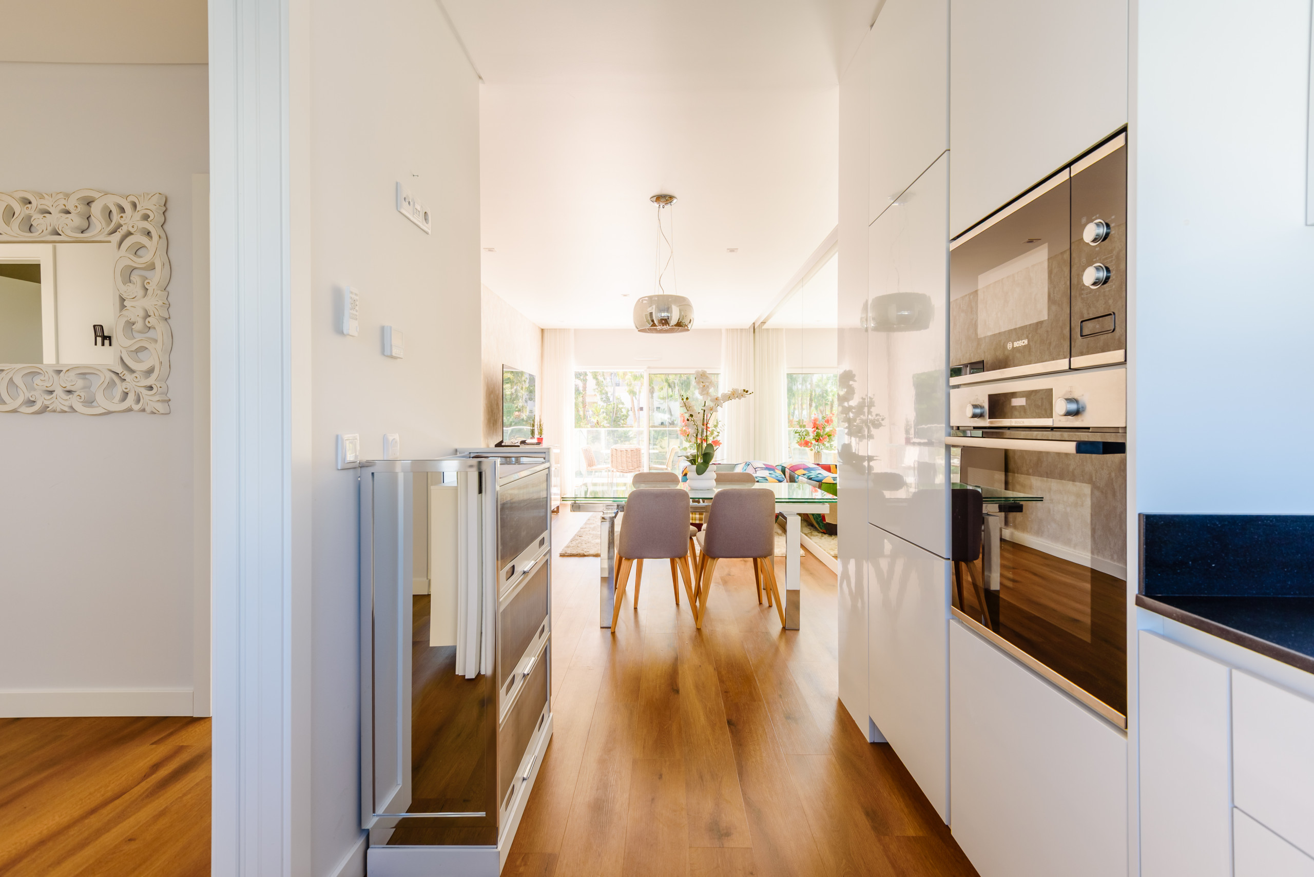 Diseñado para hasta cuatro huéspedes, la propiedad cuenta con un espacio de estar diáfano y luminoso con acabados de alta calidad en todo su interior. Grandes ventanales permiten la entrada de luz natural, mientras que la orientación hacia el sur realza la sensación de amplitud y calidez. La zona de estar se conecta con un balcón privado, ideal para disfrutar de mañanas relajadas o descansar después de un día en la playa.