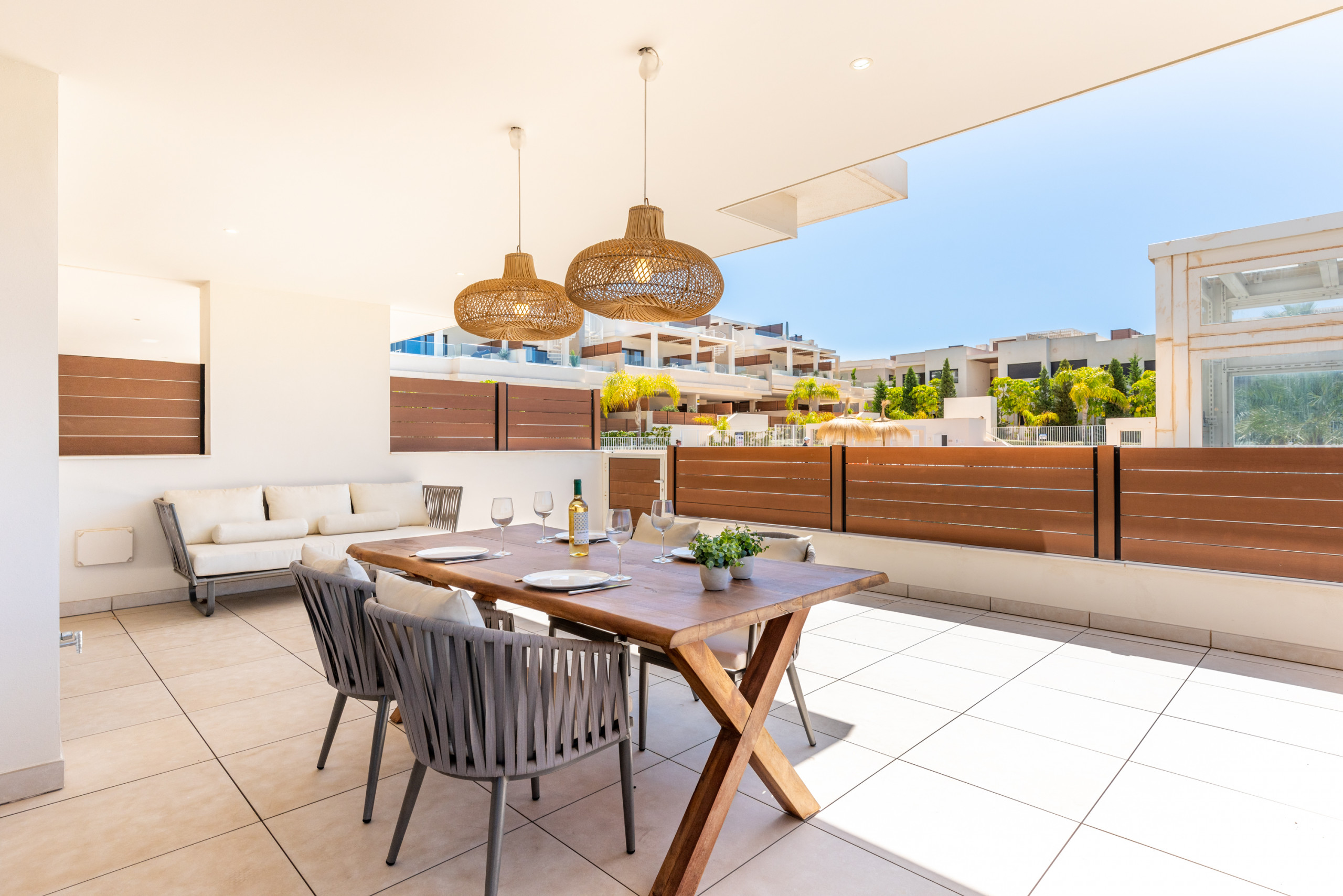 Sal a la amplia terraza privada de 31 m² y disfruta del acceso directo a la piscina comunitaria y al jacuzzi. Con vistas tranquilas a la piscina y un ambiente sosegado, es perfecto para comer al aire libre, tomar el café de la mañana o simplemente descansar al sol. El espacio exterior también incluye: