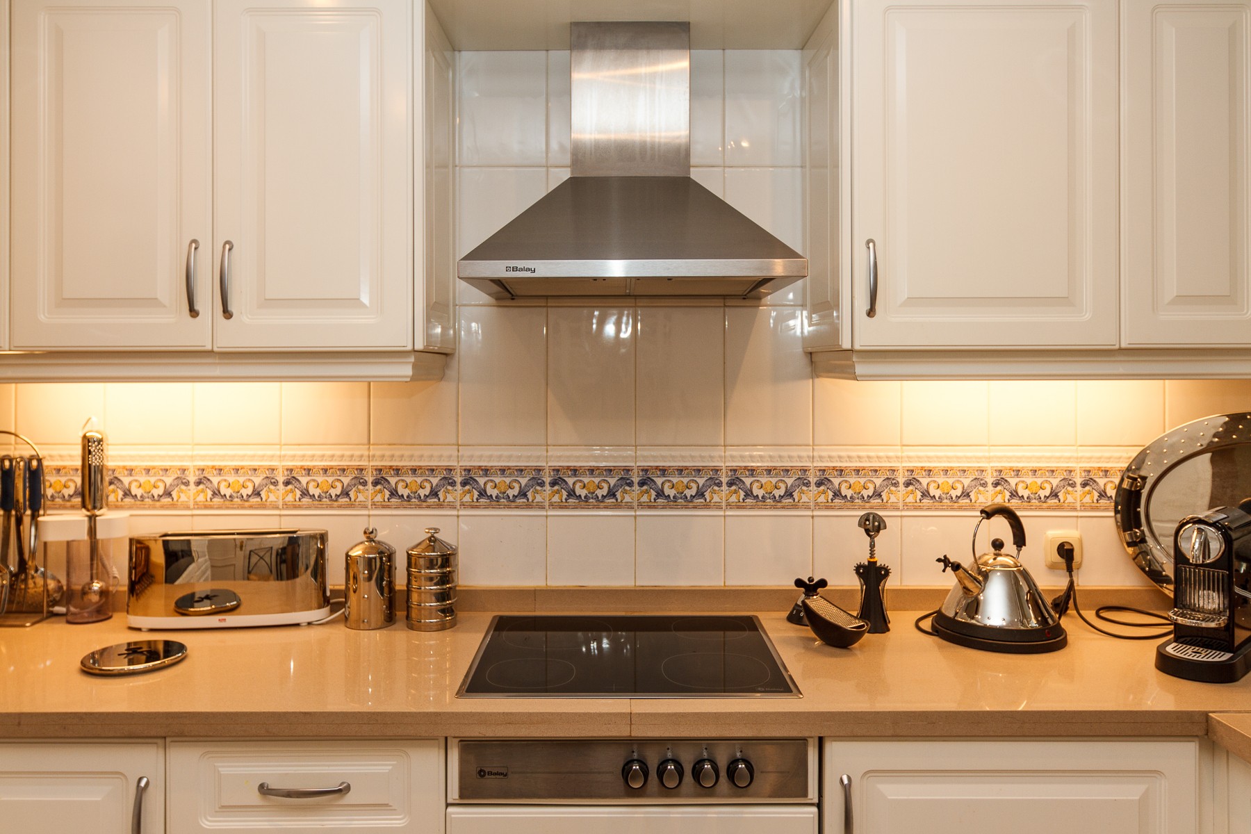 La cocina está totalmente equipada y se destaca como el resto del apartamento realmente hermoso, e incluye horno, microondas, lavavajillas y una pequeña mesa de comedor. Hay acceso a un cuarto de servicio con lavadora y un buen lugar para guardar las maletas durante la estancia.