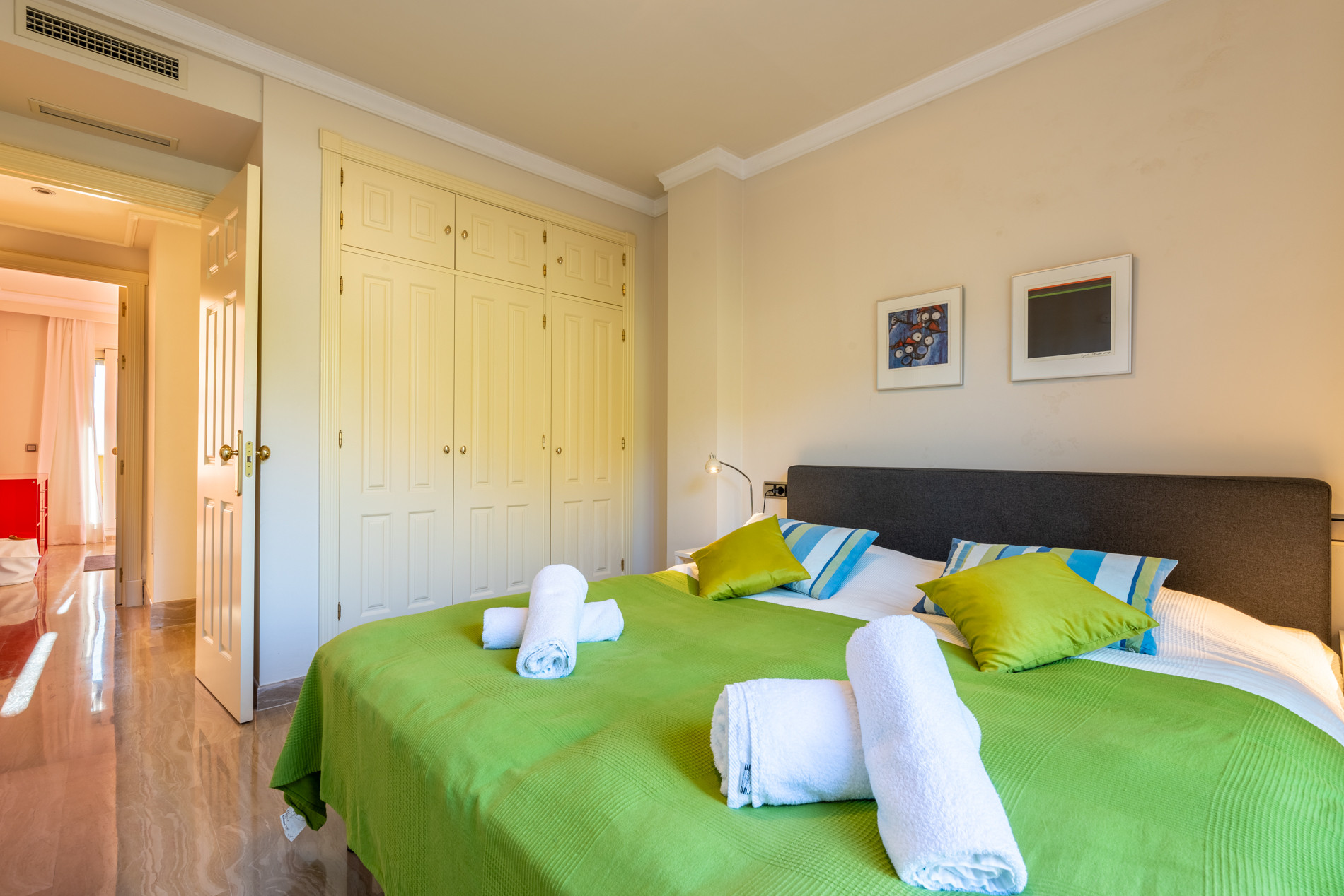 El segundo dormitorio tiene 1 cama doble, armario, aire acondicionado, baño propio y acceso directo a la gran terraza orientada al sureste.