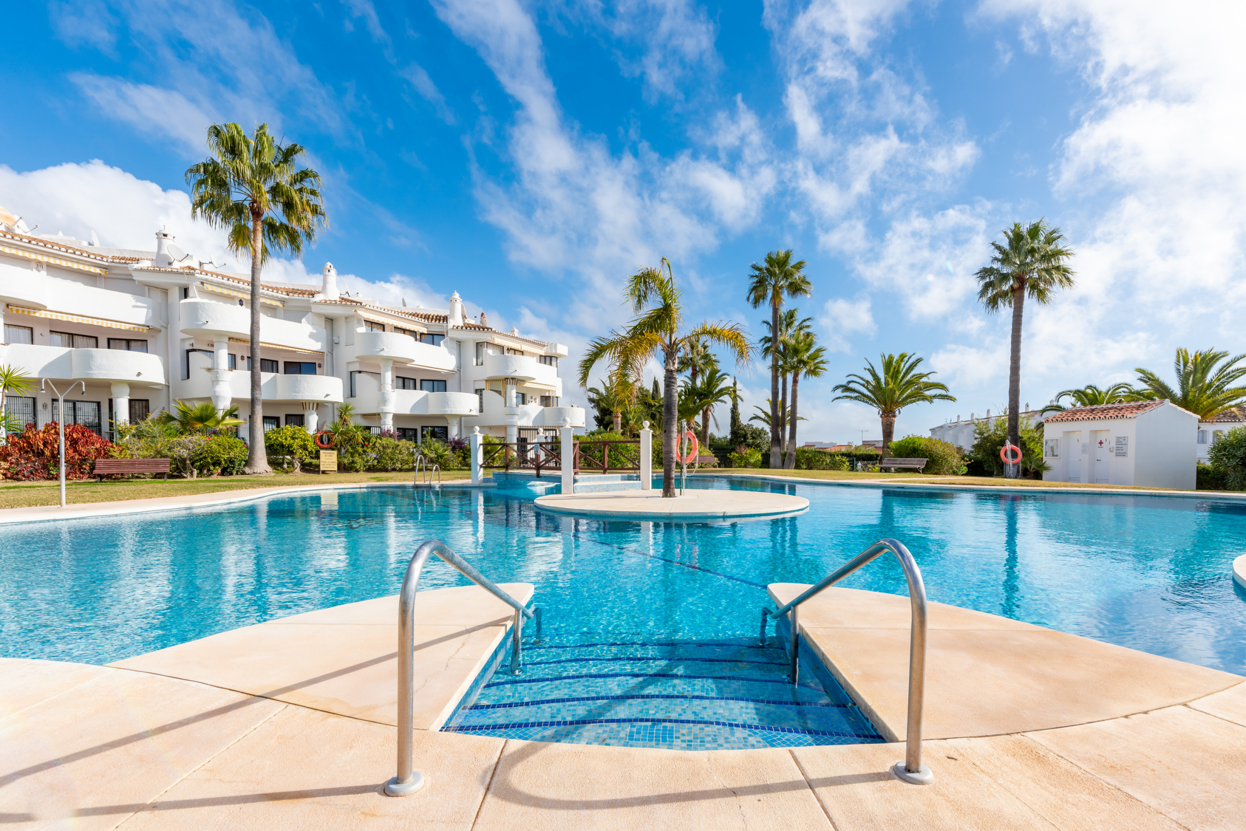 Jardines de Calahonda está perfectamente ubicado, poca distancia de la playa, restaurantes y supermercados, a los que se puede llegar en 10 minutos andando.