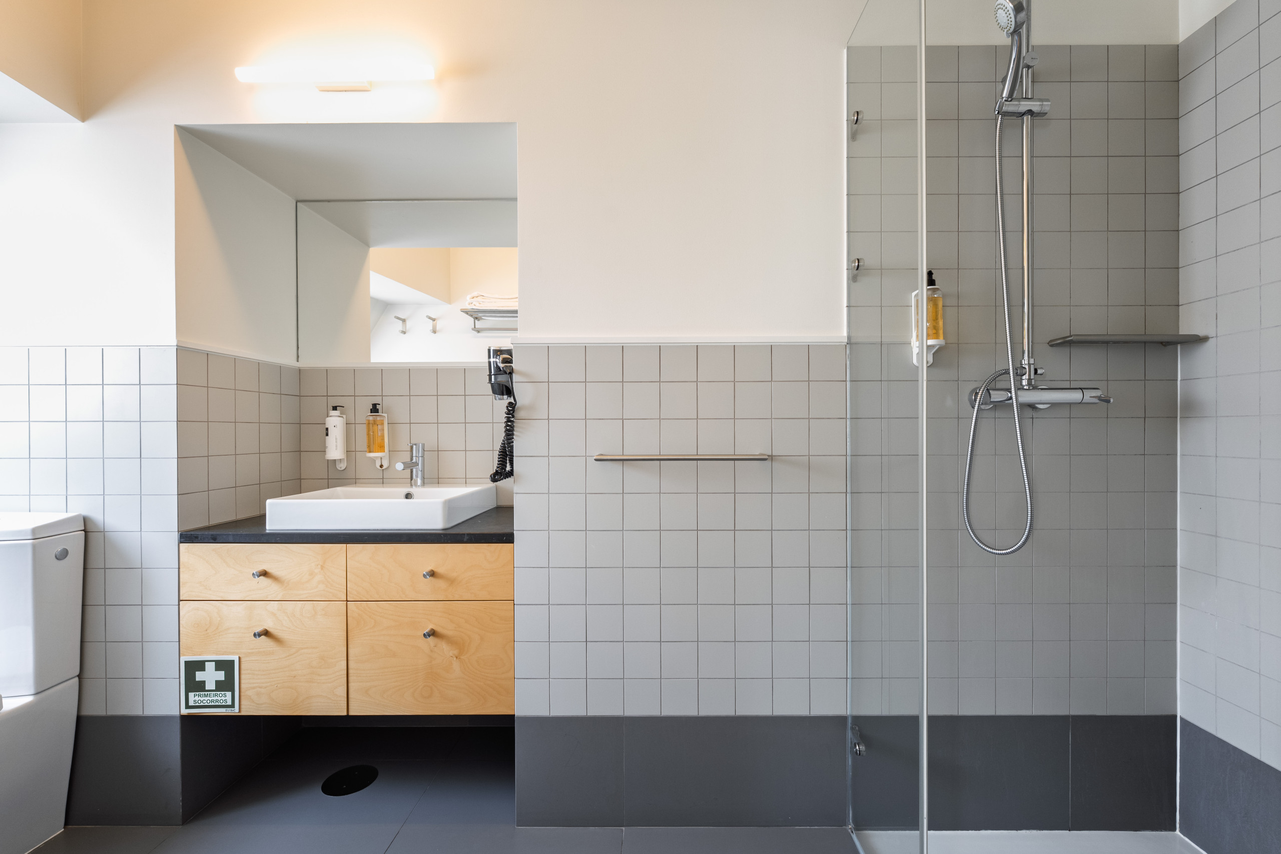 Está compuesto por una habitación con una cama queen size, un sofá-cama doble y un baño equipado con ducha.