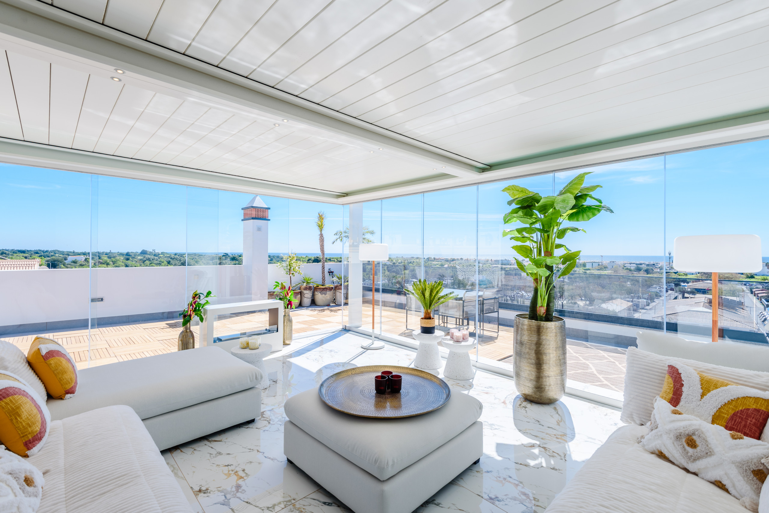 Un verdadero punto destacado de la propiedad es la amplia terraza privada en la azotea, a la que se accede directamente desde el interior del apartamento. Cubriendo toda la huella del ático, este espacio exclusivo disfruta de sol durante todo el día y ofrece vistas lejanas al océano. Está diseñado tanto para la relajación como para el entretenimiento, con una pérgola bioclimática, área de comedor al aire libre, barbacoa y sauna, creando una experiencia única de bienestar y estilo de vida.