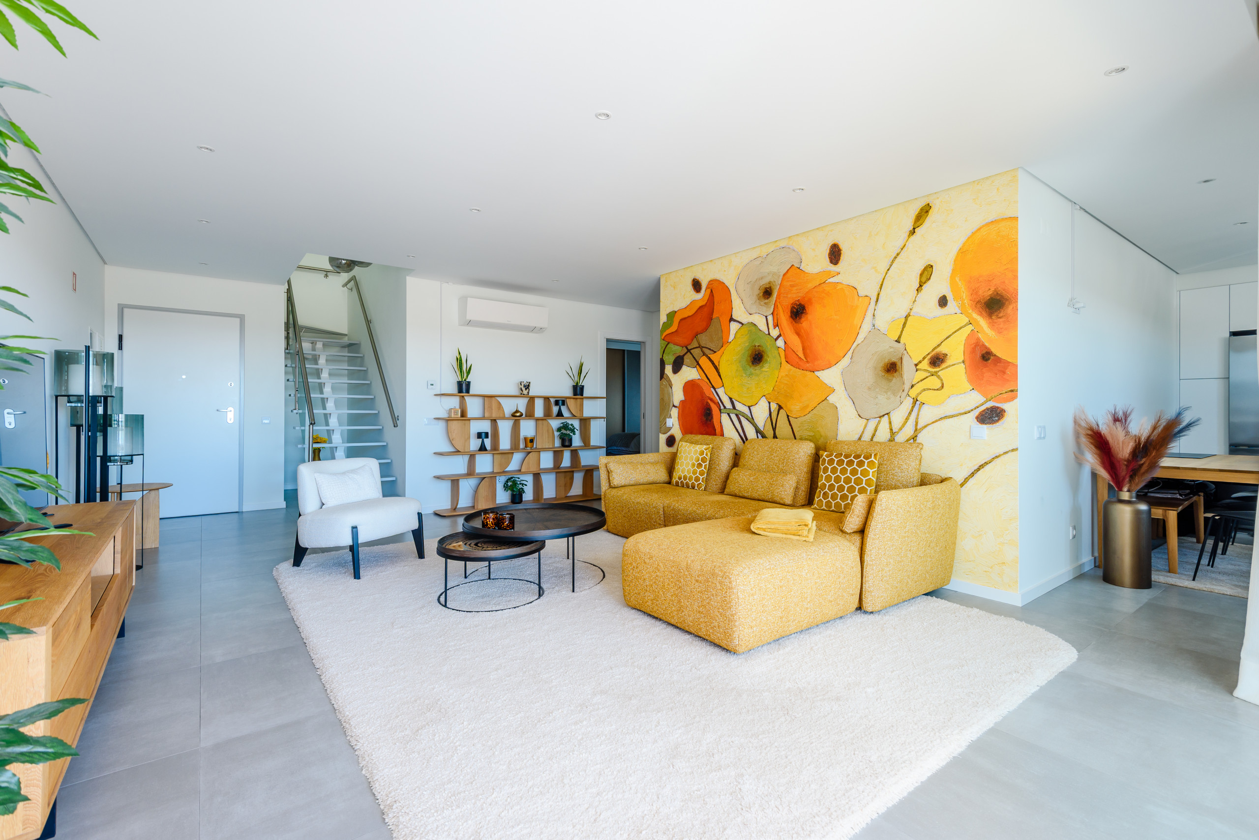 Situado en la planta superior con acceso por ascensor, este ático de 120 m² está lleno de luz natural y diseñado en torno a un elegante espacio de estar y comedor de planta abierta. Grandes ventanales enmarcan vistas lejanas del océano, creando una atmósfera tranquila y luminosa en todo el espacio. El apartamento está completamente climatizado y amueblado con un alto nivel de calidad, combinando un estilo contemporáneo con la comodidad del día a día.