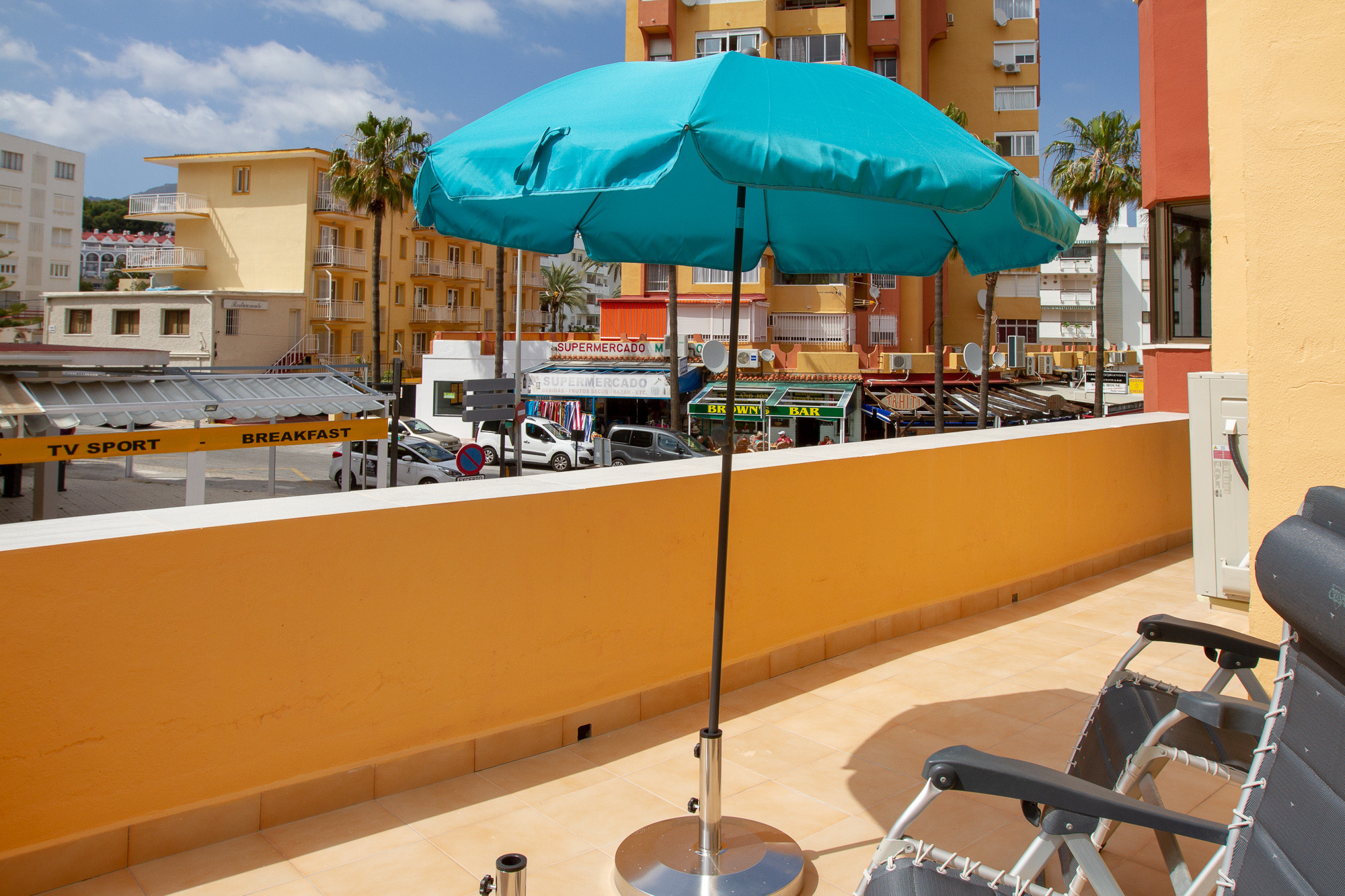 El apartamento tiene una segunda terraza orientada al noroeste con vistas a la calle de al lado del apartamento, ideal para tomar el sol.