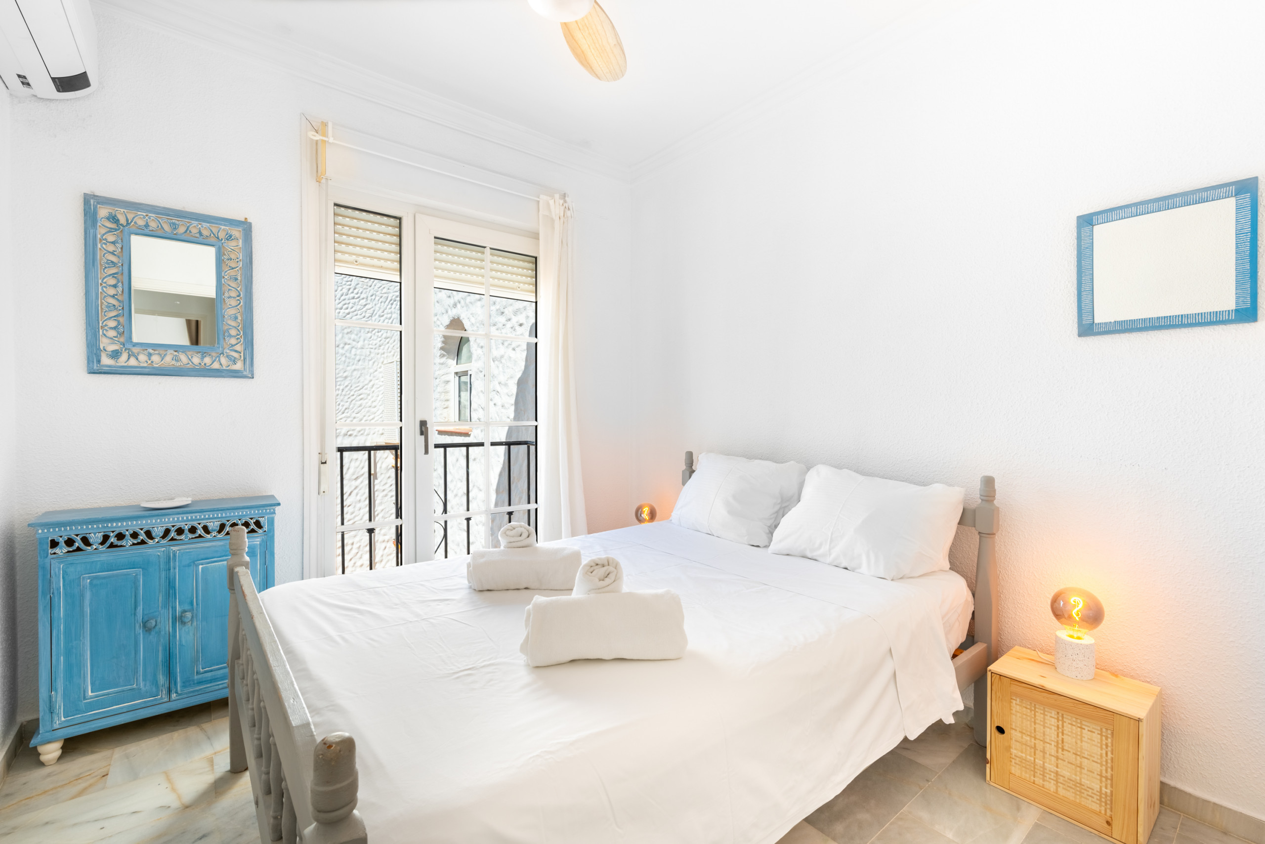 Tercer dormitorio con cama queen-size (160x200) y luz natural, con vistas al encantador pueblo blanco