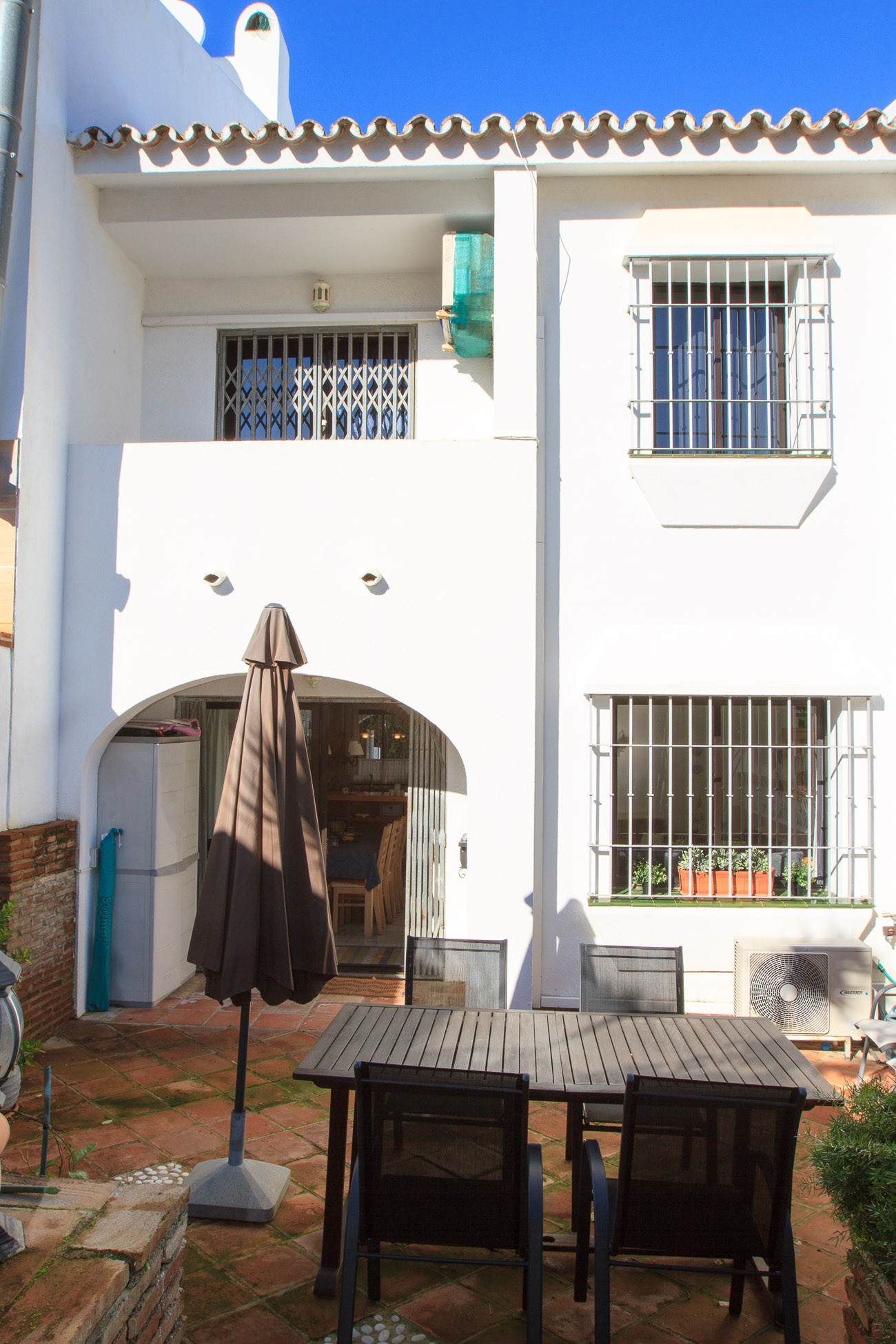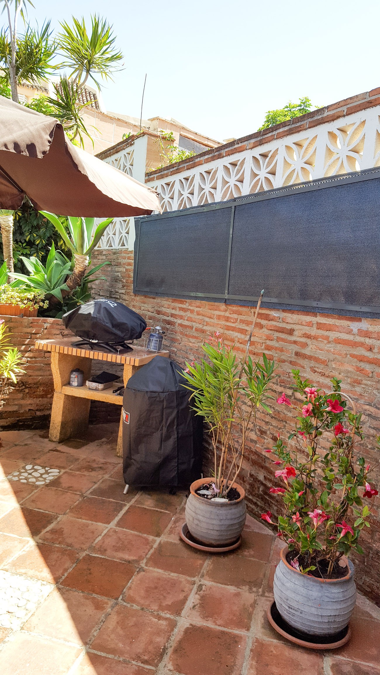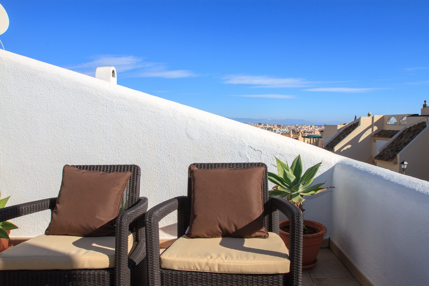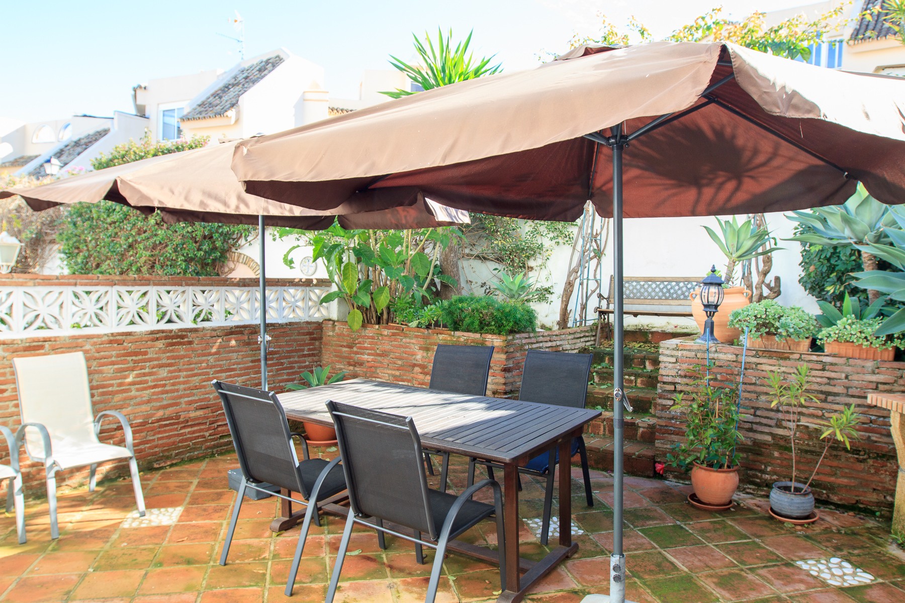 En la primera planta, encontrará una terraza en la azotea muy bien amueblada con mesa y sillas al aire libre para 4 personas y una cama solar y hay una hermosa vista a las montañas de Mijas.