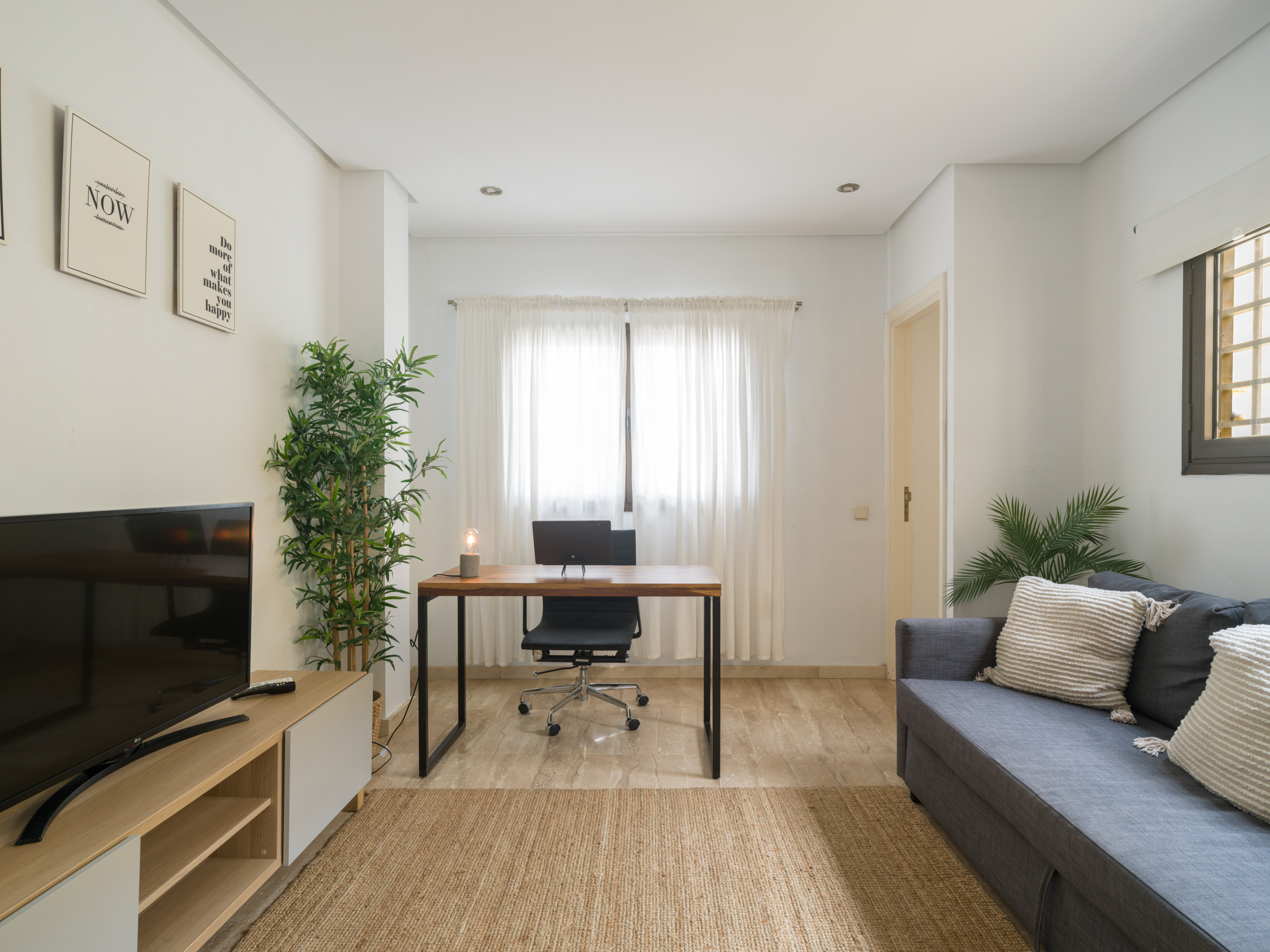 Entre ambos dormitorios hay un salón con un amplio y cómodo sofá cama de dos plazas (1.50 metros) y con Smart tv, que se puede utilizar para como un tercer dormitorio.
