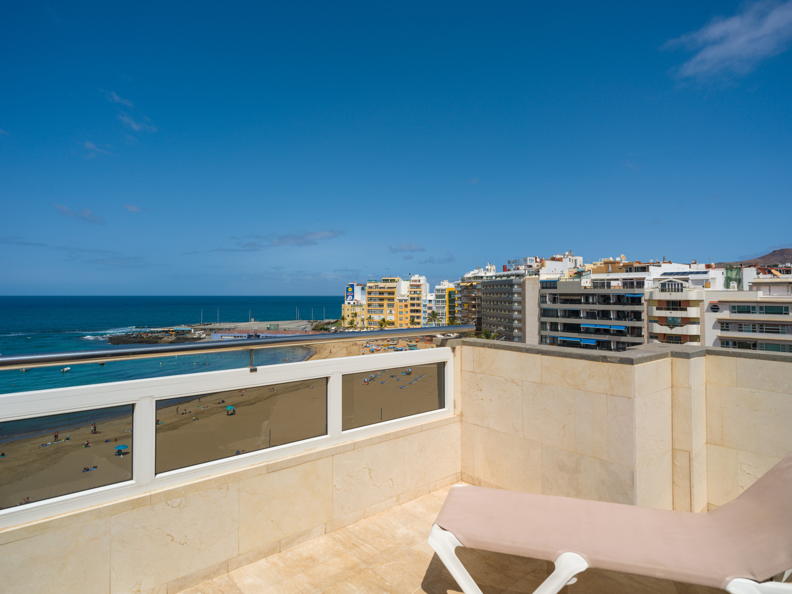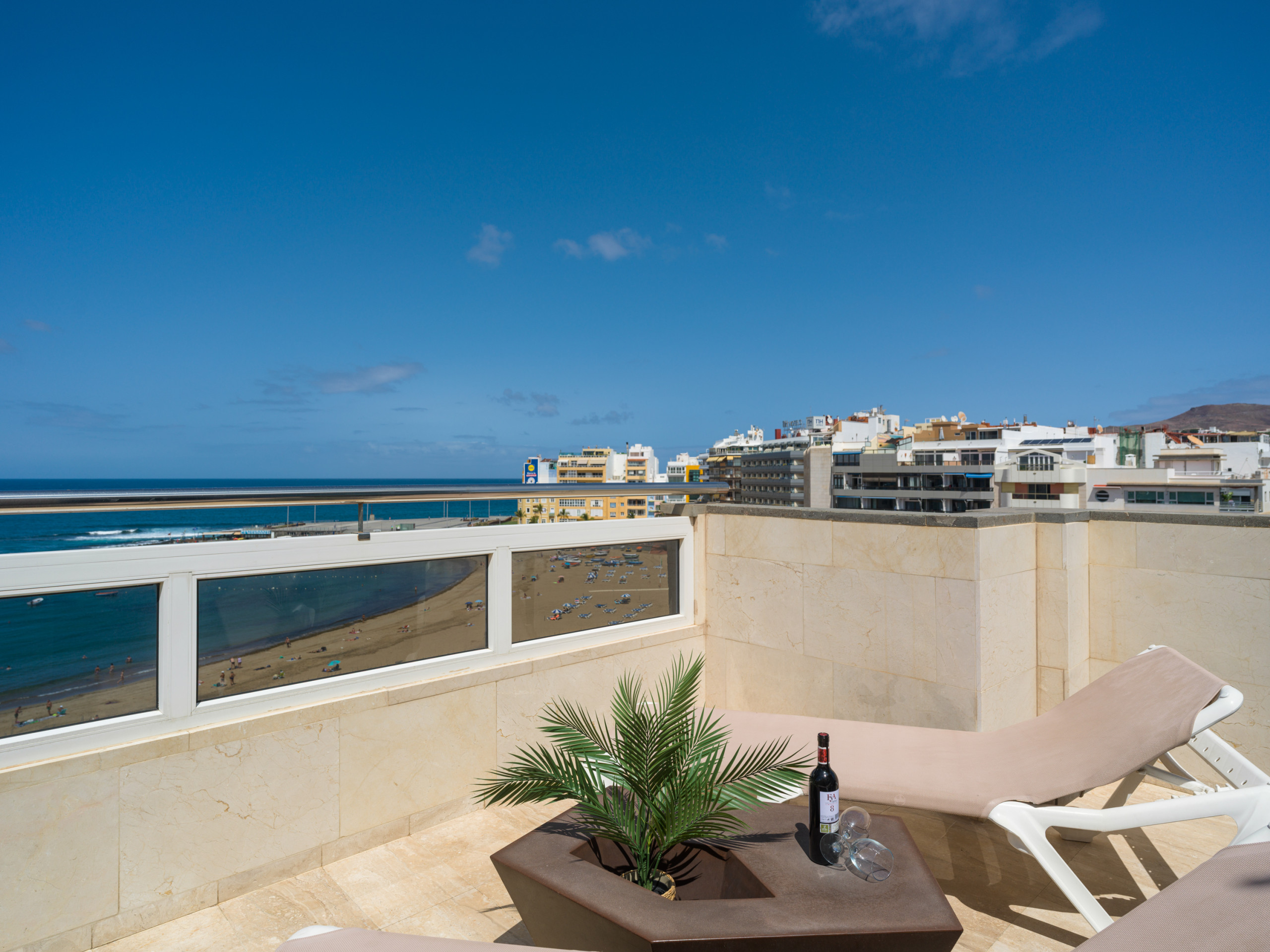 Una de las características destacadas de la vivienda vacacional es su terraza privada de 20 metros cuadrados, con muebles de exterior, hamacas incluidas, donde los huéspedes pueden relajarse, tumbarse al sol y disfrutar de la maravillosa vista al mar, de la playa, de la puesta del sol y de la isla de Tenerife, con su majestuoso volcán del Teide, montaña más alta de España.
