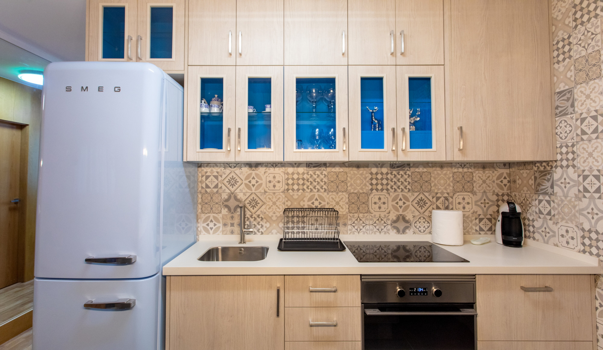El alojamiento cuenta con con habitación independiente y un acogedor salón con cocina integrada moderna y totalmente equipada totalmente con placa vitrocerámica, nevera, microondas, congelador, lavadora, vajilla/cubertería, utensilios/cocina, cafetera, tostadora, hervidor de agua y exprimidor.