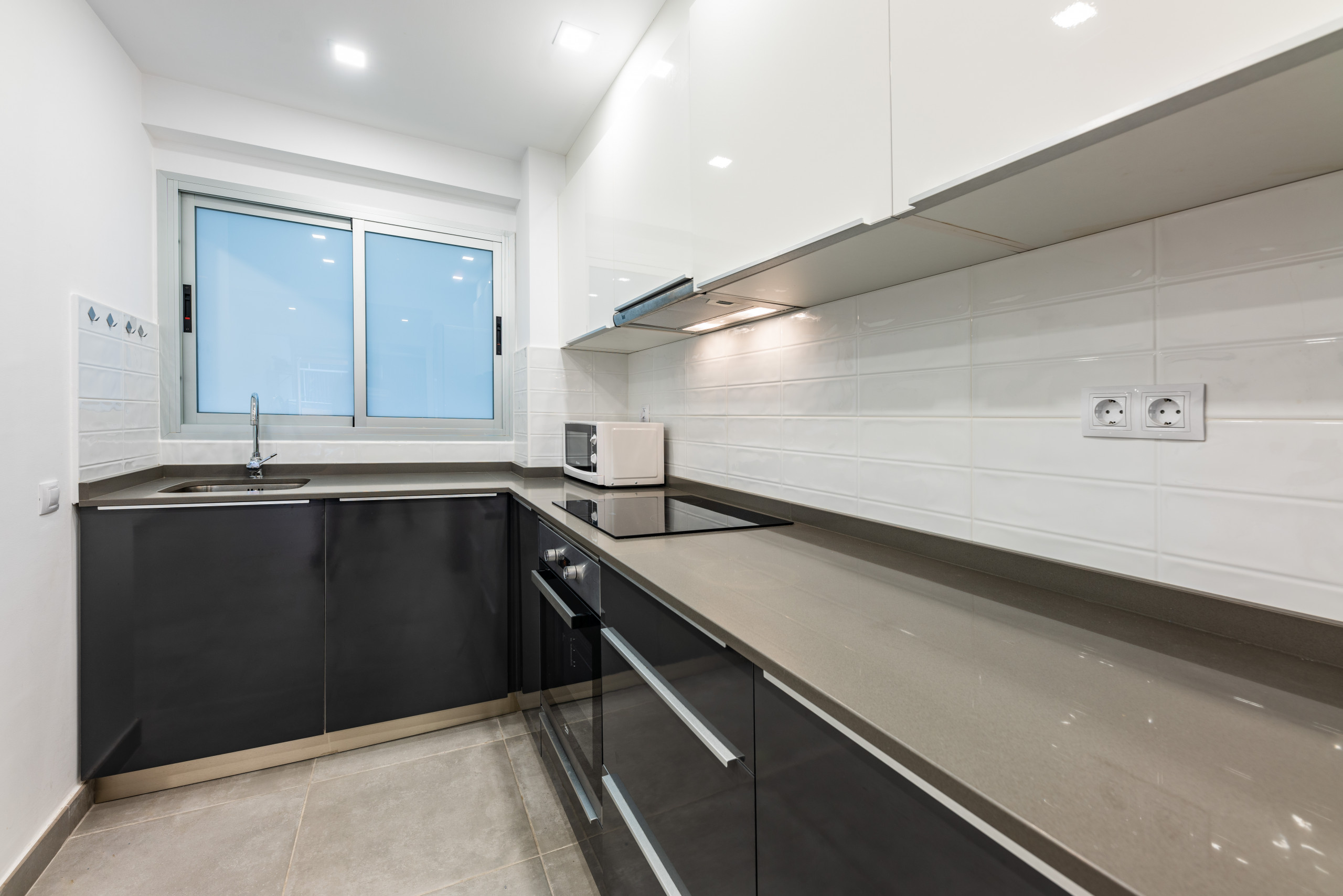 La cocina de estilo americana se encuentra totalmente equipada con placa de inducción, nevera, microondas, horno, congelador, lavadora, secadora, lavavajillas, vajilla/cubertería, utensilios/cocina, cafetera, tostadora, hervidor de agua y exprimidor.