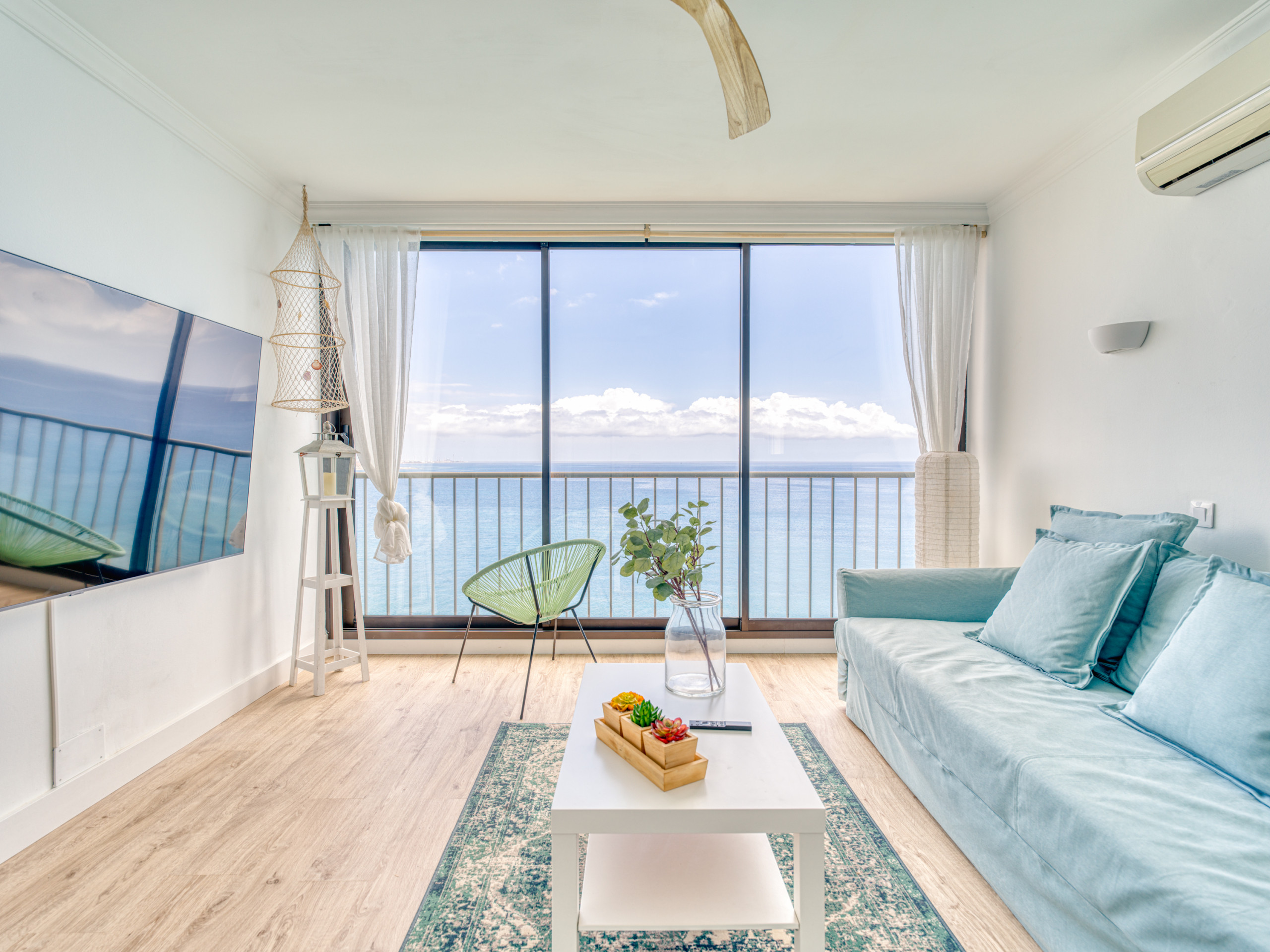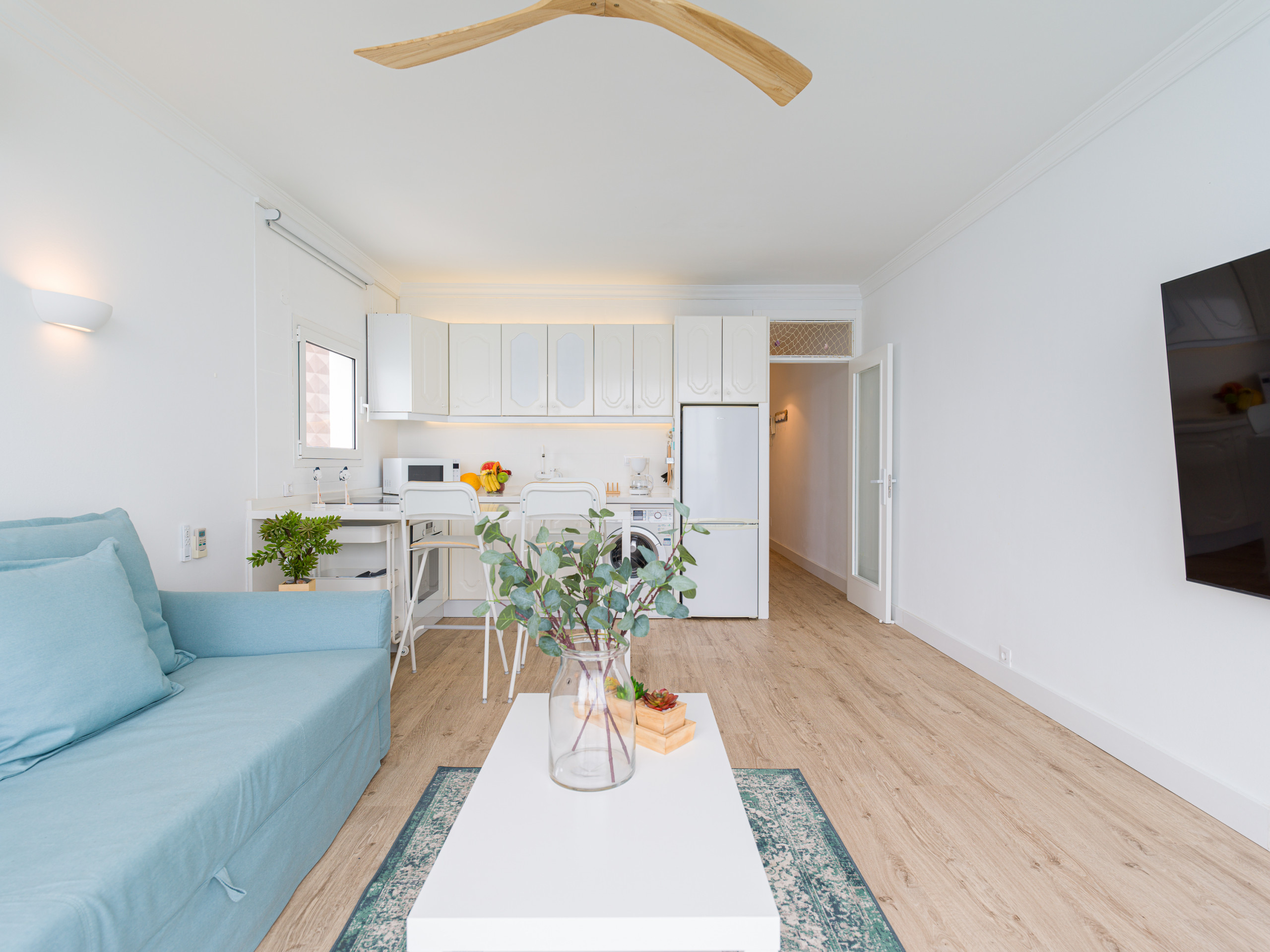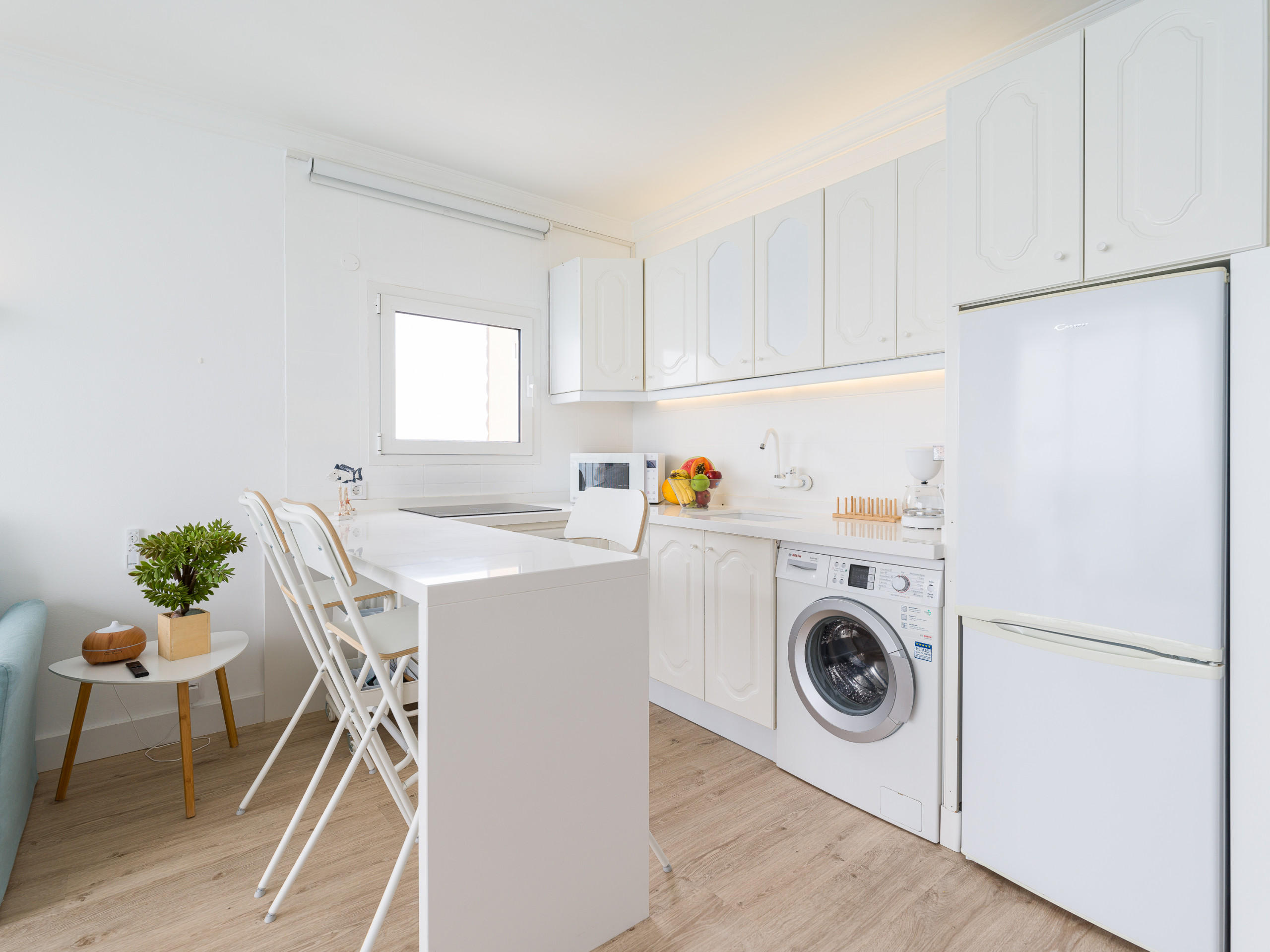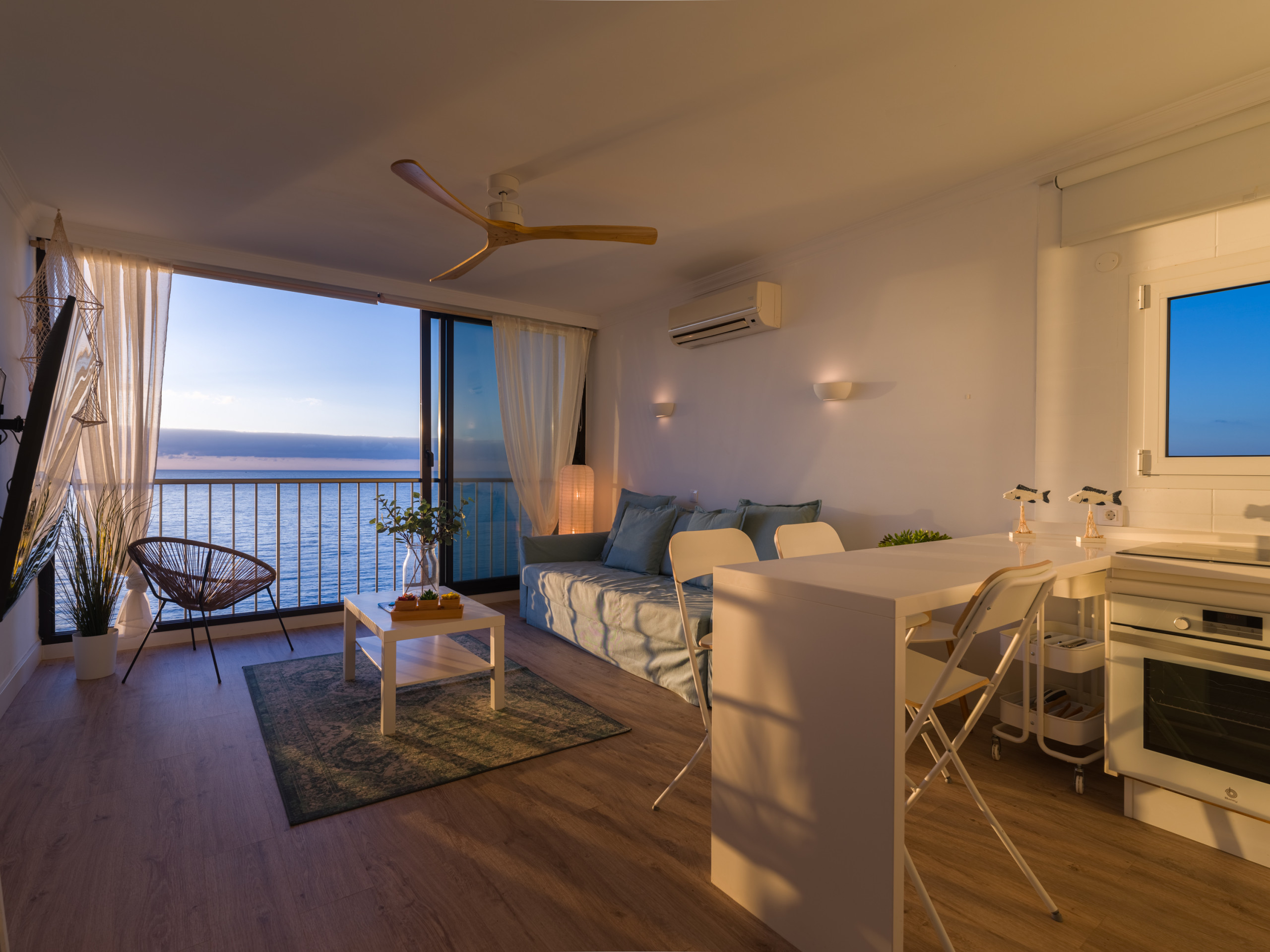 If you like to feel the ocean, it is the best place you can choose. You open the big Window and you can hear the waves. The apartmant is clean, it has enough space, and near to the beaches . We hired a car at the airport , we could easily park in frover más