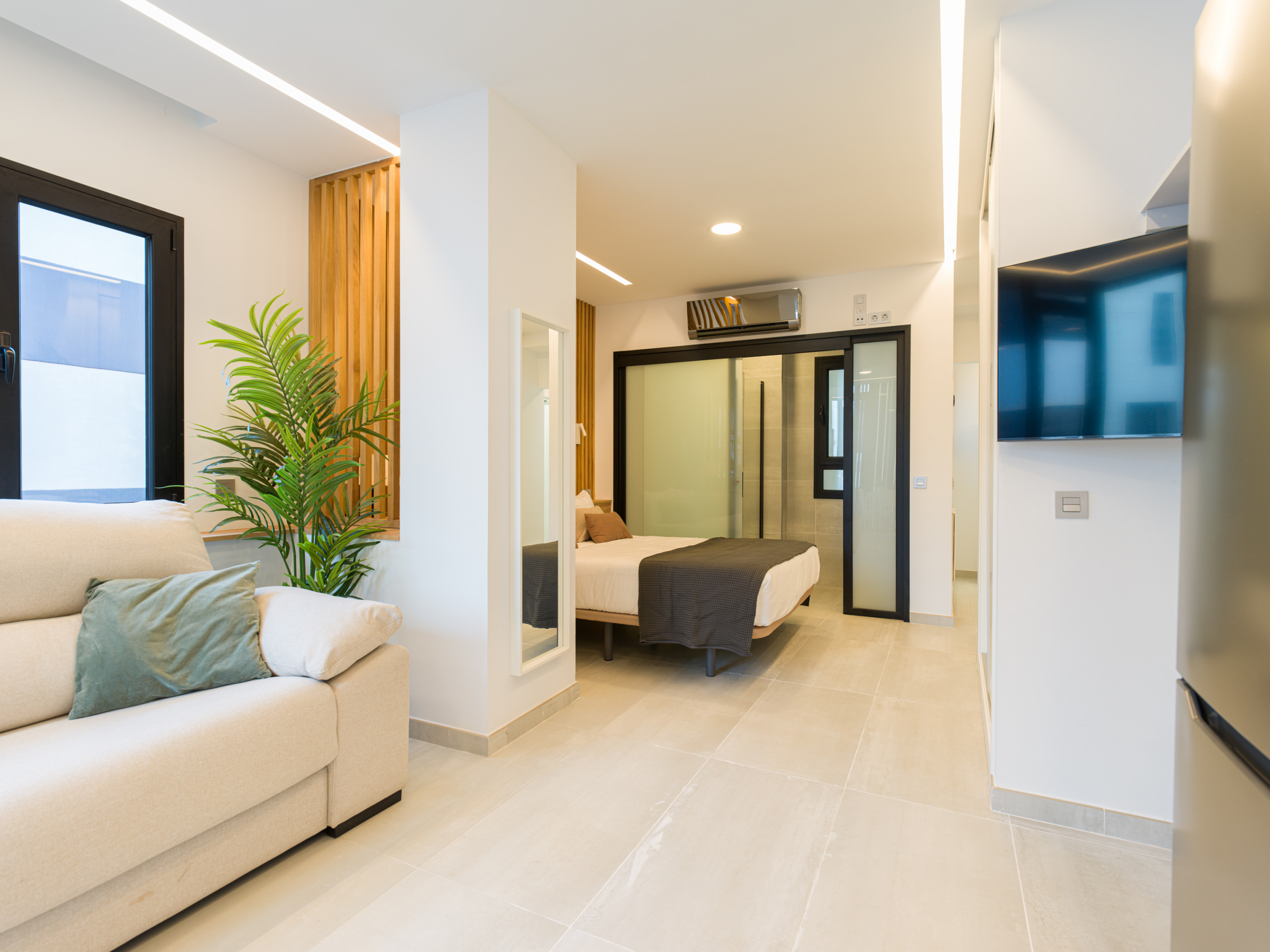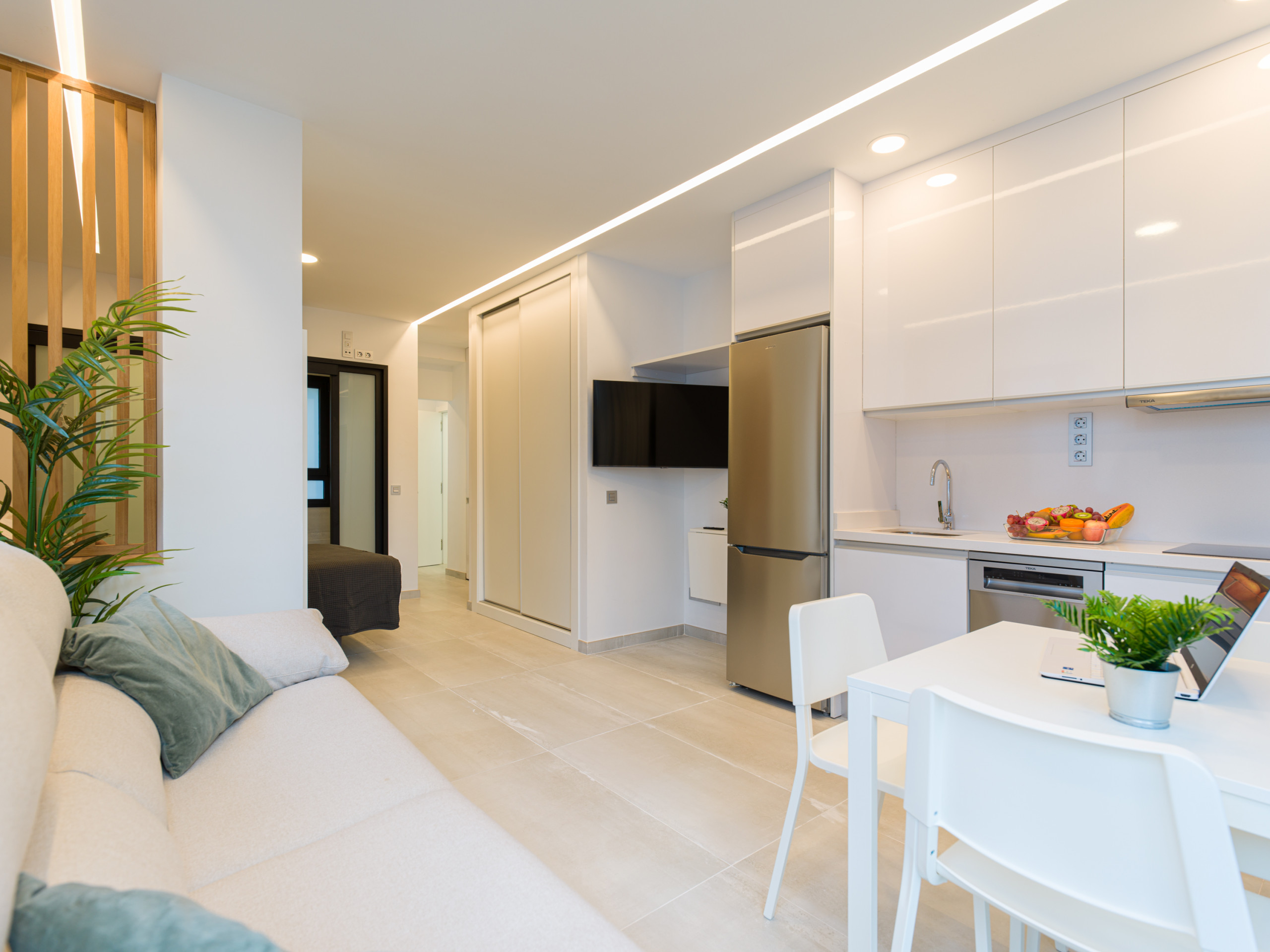 Es muy práctica, funcional, tecnológica y eco friendly, con electrodomésticos de bajo consumo, iluminación LED, depósitos para reciclaje, reguladores de caudal de agua y por su buena ubicación, no es necesario disponer de coche, se pueden mover a pie, en bicicleta o usando el transporte público, ya que la estación de buses (Guaguas) está a menos de 500 metros, en el famoso Parque Santa Catalina y desde allí se pueden desplazar a cualquier parte de la isla.
