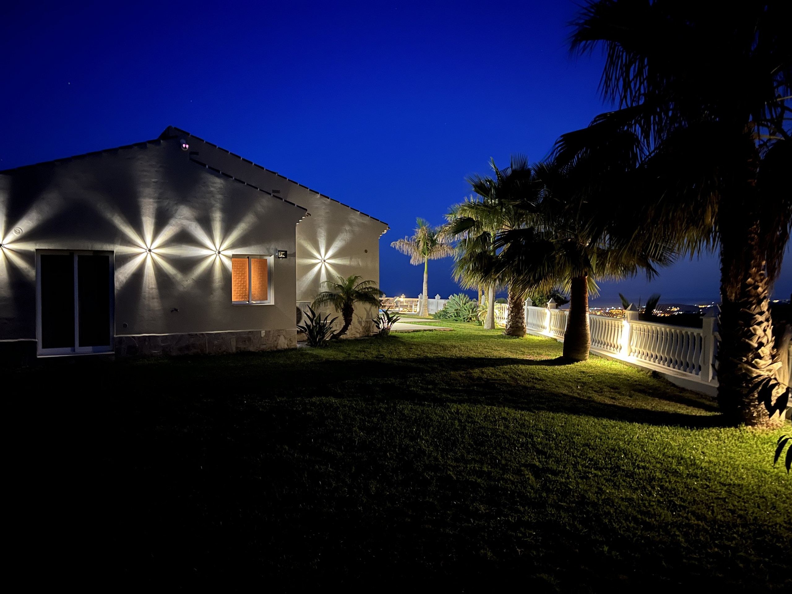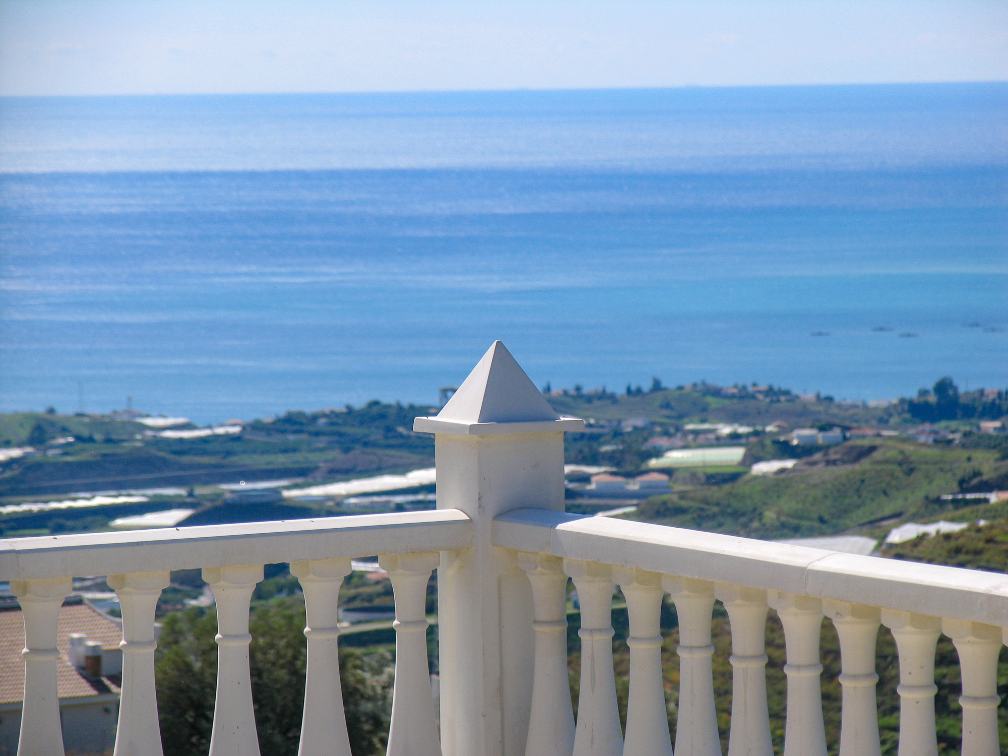 La gran terraza está bien amueblada con varias mesas y sillas de comedor, tumbonas con mesas de bebidas, sombrillas, sofá al aire libre, etc. La vista es magnífica sobre las preciosas montañas andaluzas y el mar Mediterráneo.