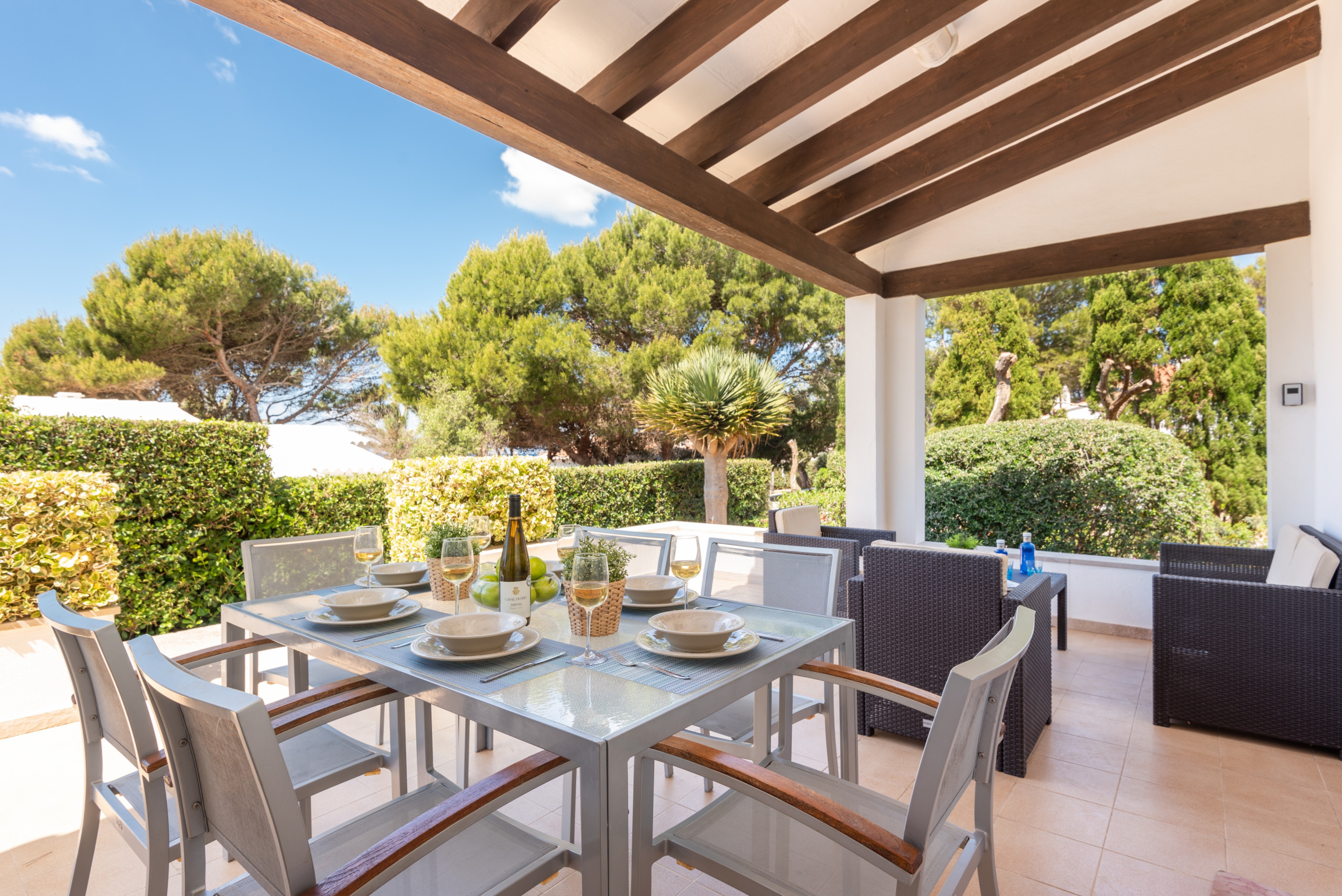 Bonita villa situada en la tranquila urbanización de Binisafuller, en la costa sur de Menorca, en el municipio de Sant Lluis. A tan solo cinco minutos de la Cala Binisafuller y de gran variedad de pequeños bares y restaurantes con vistas al mar donde sirven deliciosos platos.
