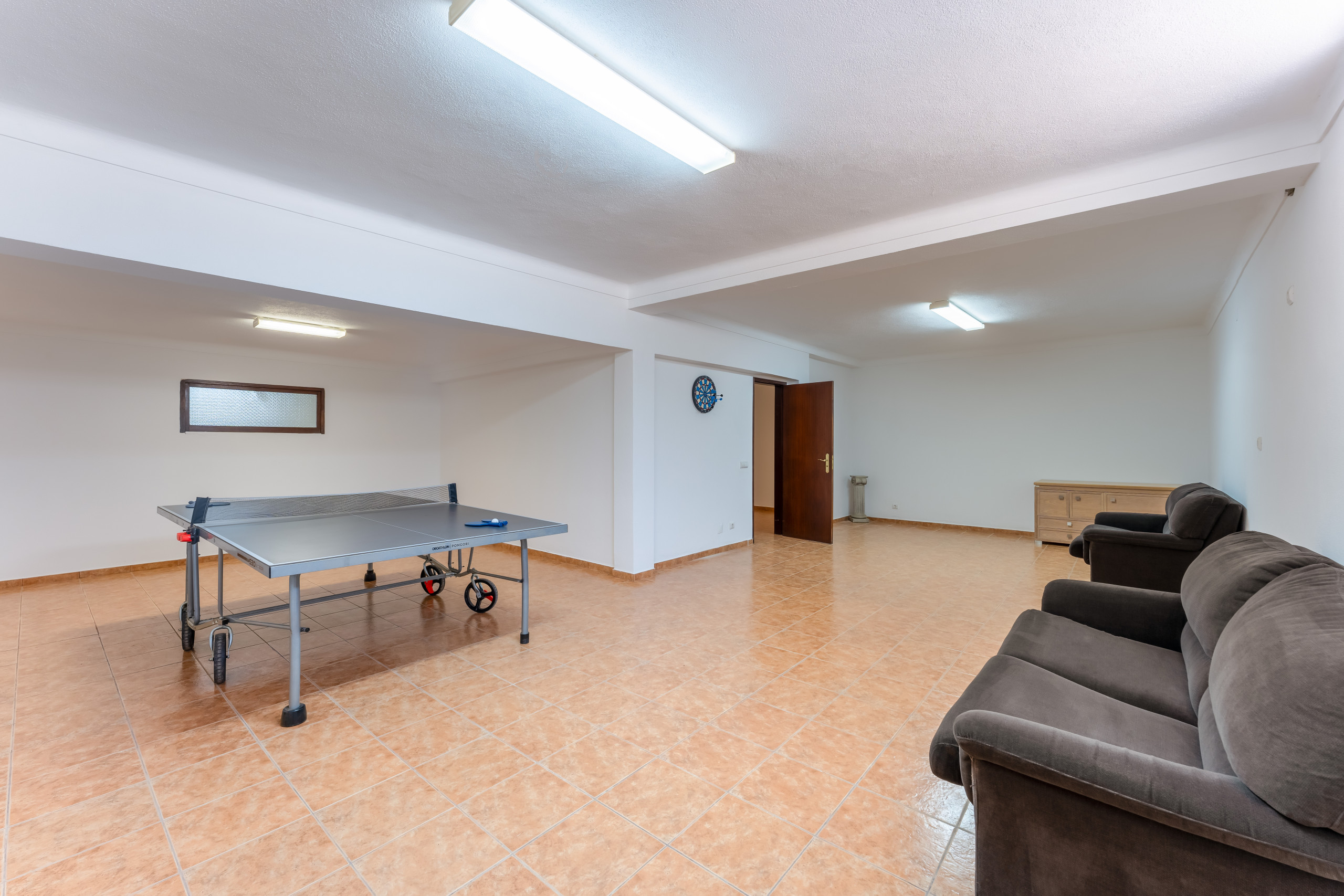 En el sótano, también hay una sala de juegos con mesa de billar.