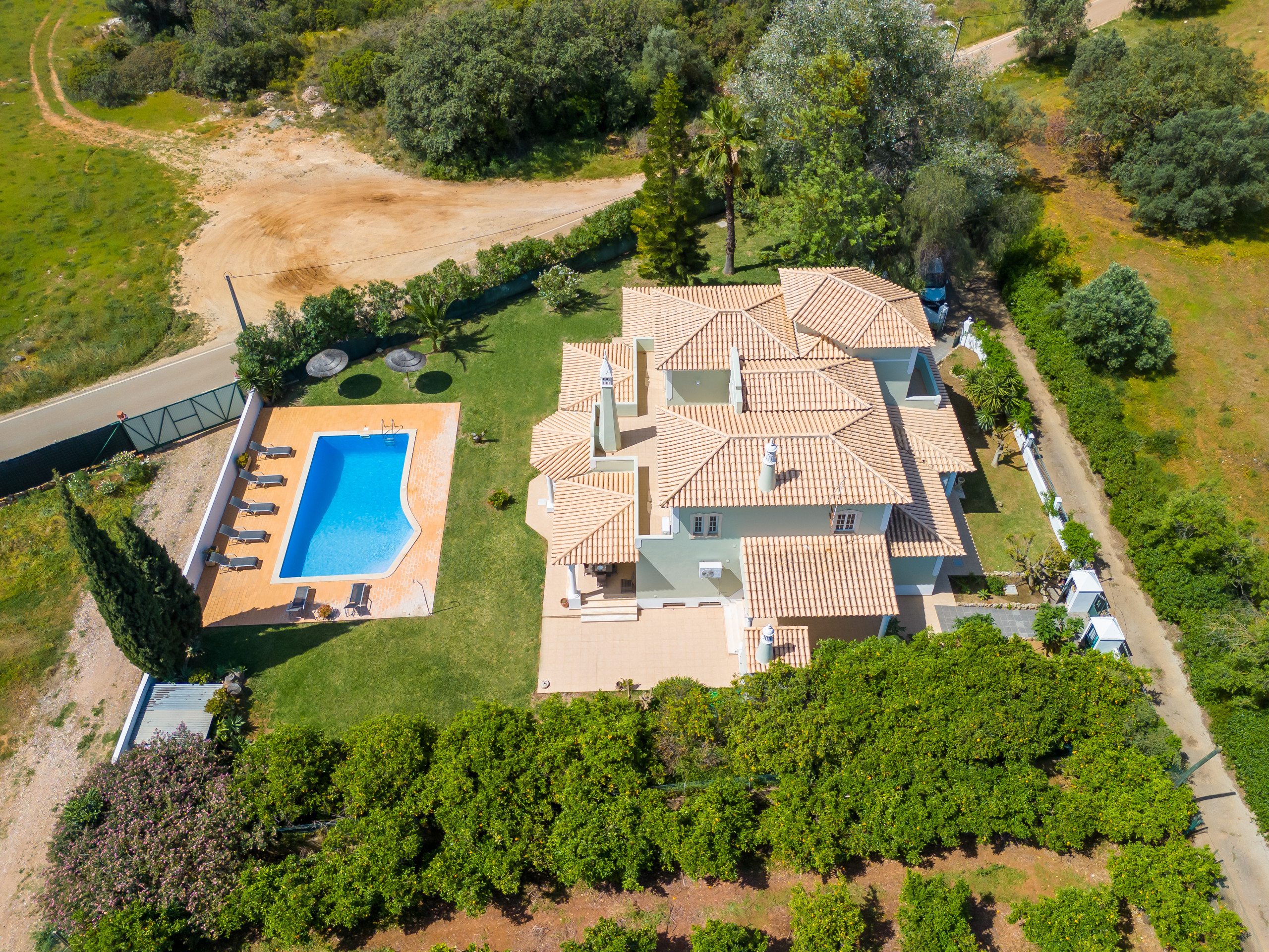 Large property in rural setting with a lovely size pool. Busy road, car is absolutely essential. Plenty of seating areas.
