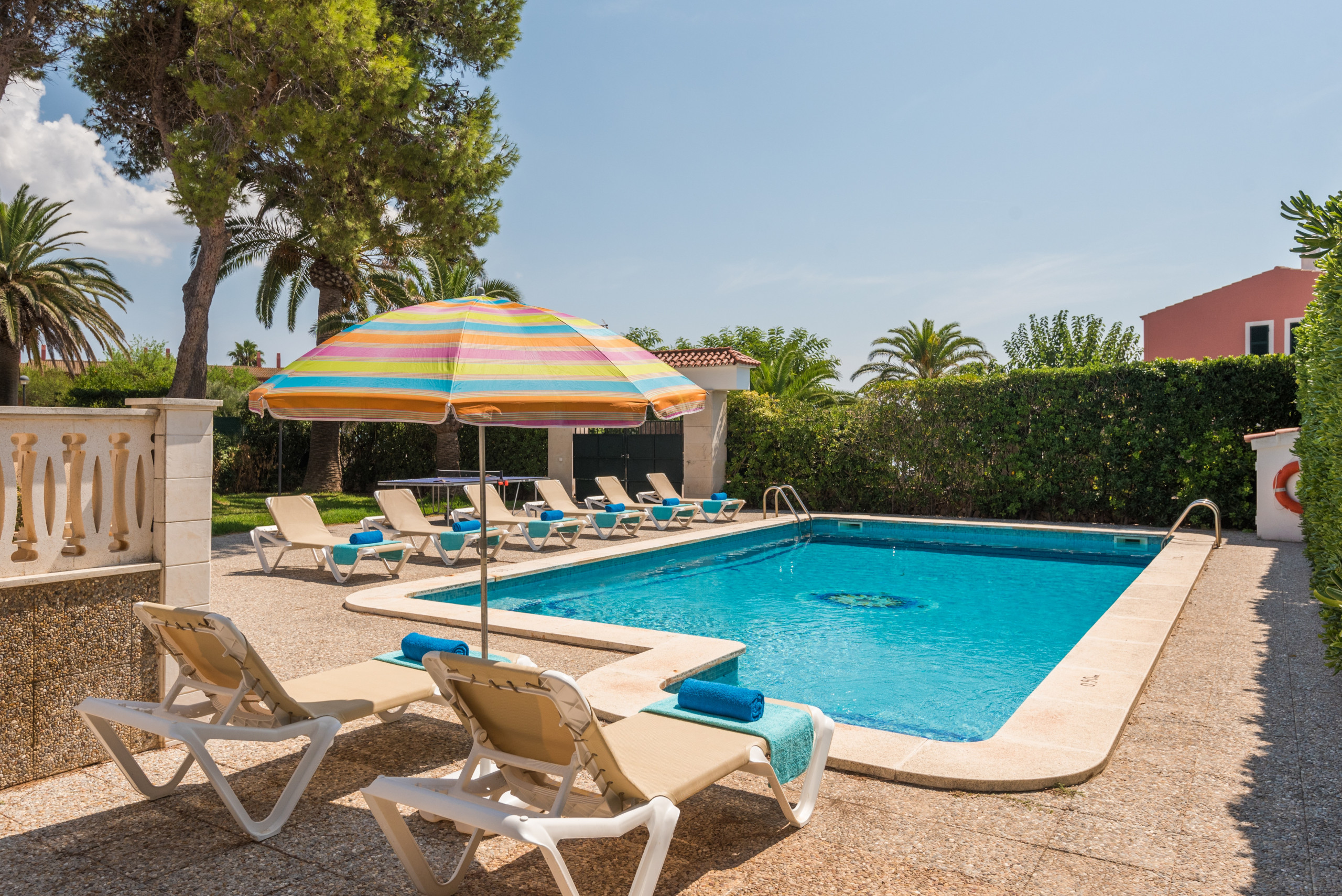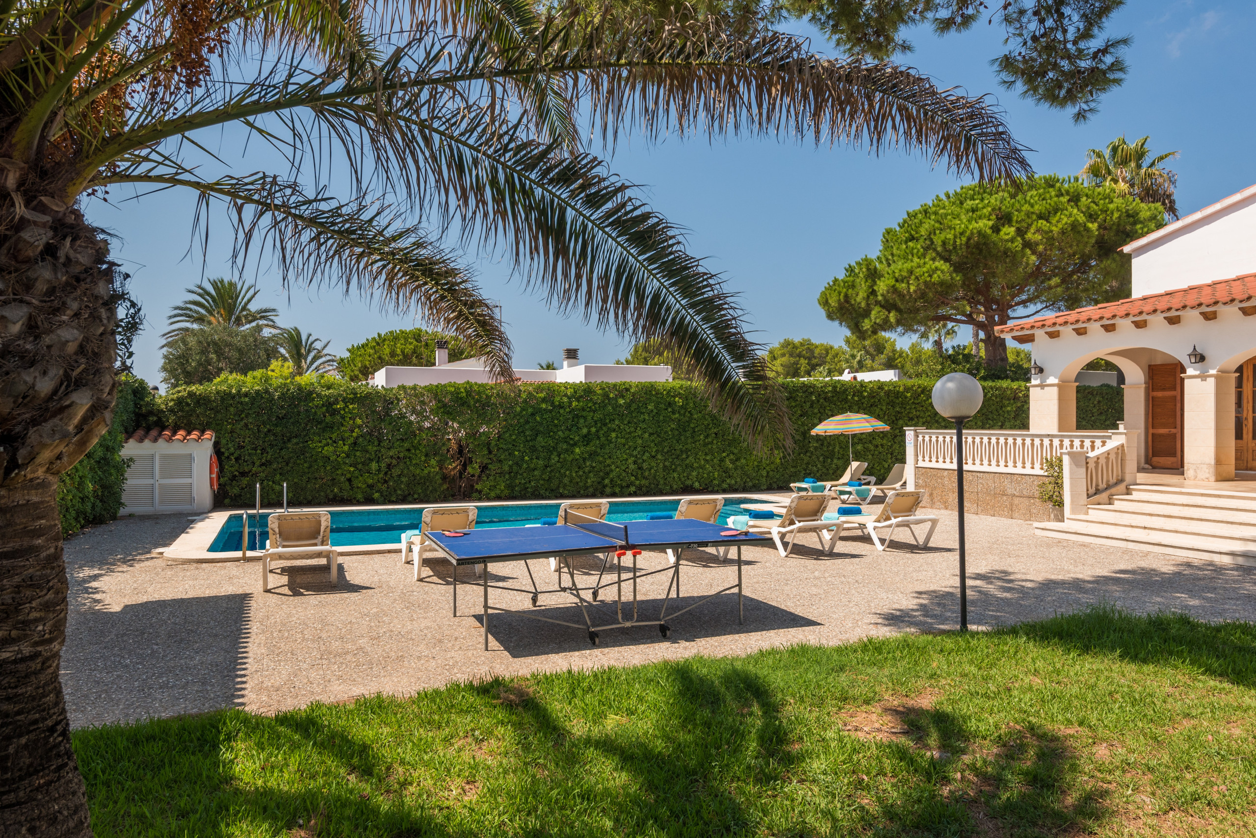 Bellissima casa in una zona tranquilla e facile da muoversi a piedi!eravamo due famiglie e siamo riusciti a goderci tutte le zone in piena tranquillità! La casa è attrezzata e ha tutto il necessario per una vacanza. Aria condizionata in tutte le camere, anche quella al piano di sopra. Alla prima settimana ci è stata fatta una pulizia. La piscina e la zona grill molto belli. Vengono forniti teli e lenzuola. Speriamo di poter tornare a minorca e tornare in qiesta magnifica villa!