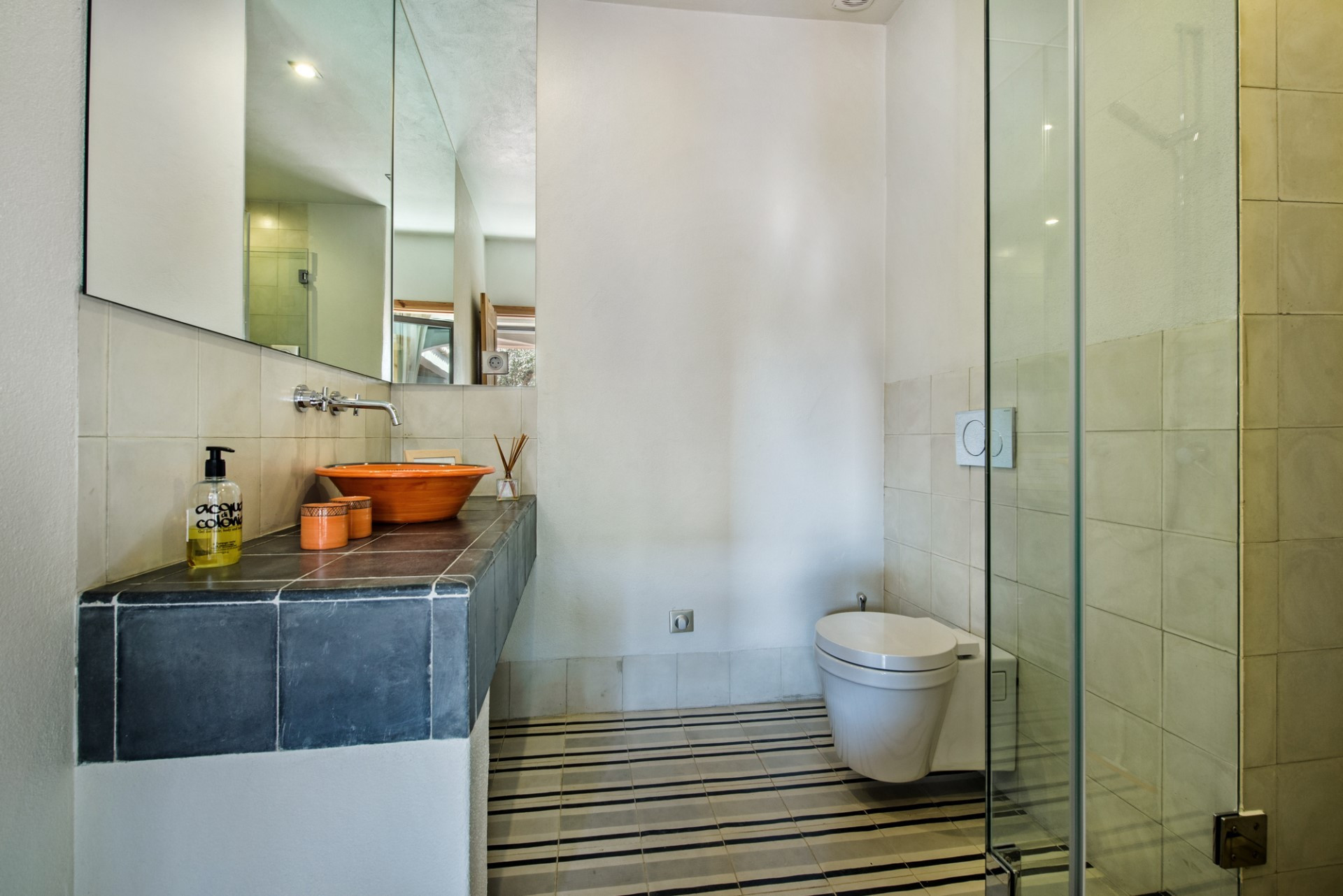 Otro dormitorio doble con baño en suite se abre a la terraza delantera, así como a la terraza de la casa de invitados y disfruta de vistas al jardín y al mar.