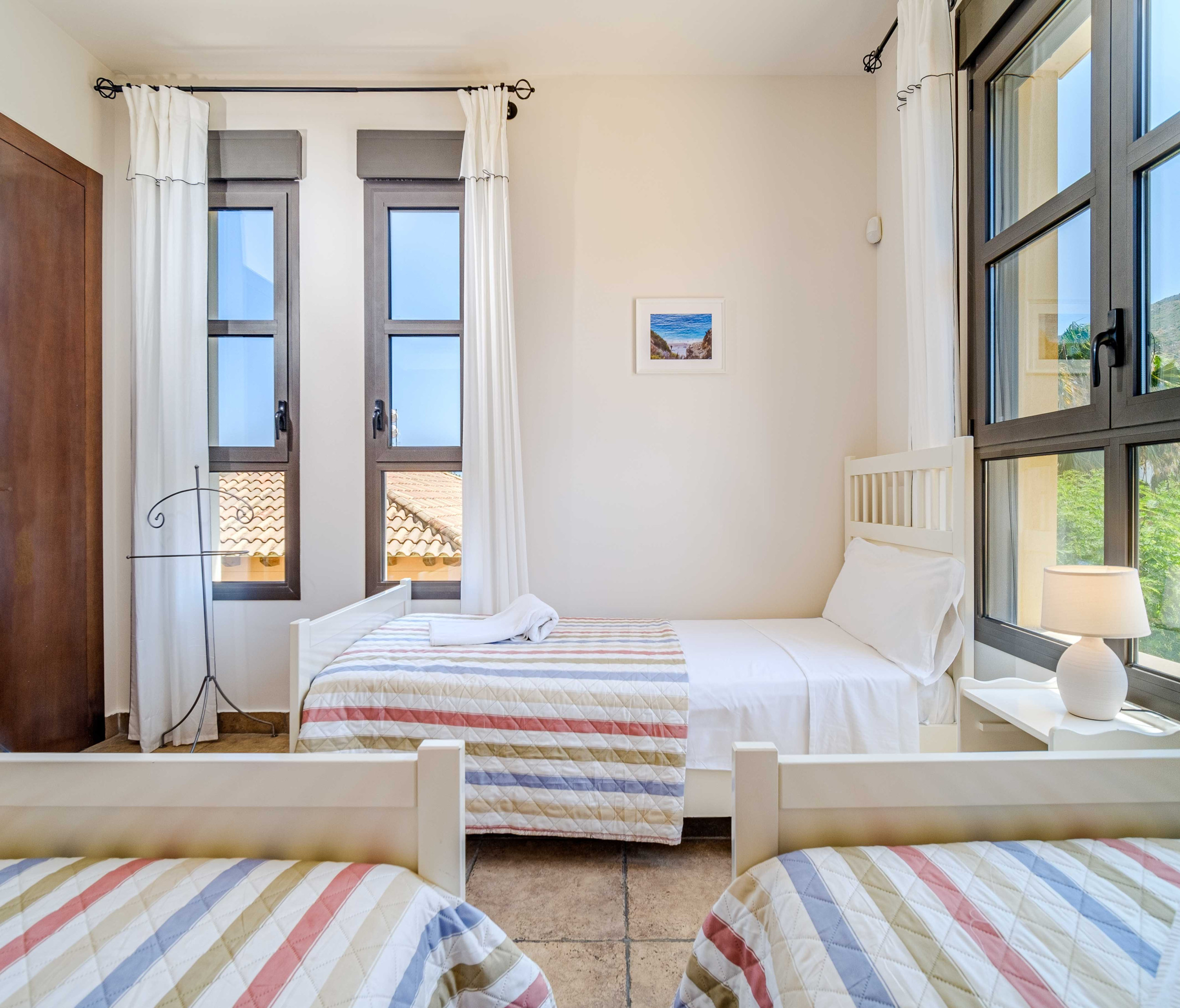 El primero de los tres dormitorios se encuentra en la planta baja y ofrece acceso directo a la cocina y las áreas al aire libre. Una cama doble y un baño en suite aseguran que pueda encontrar a su refugio en esta villa. Arriba, a los huéspedes se les ofrecen otras dos hermosas habitaciones, una con tres camas individuales y otra con una cama doble. Ambas habitaciones tienen ventiladores de techo para refrescarse en el clima cálido, ¡y ambas comparten un hermoso baño!