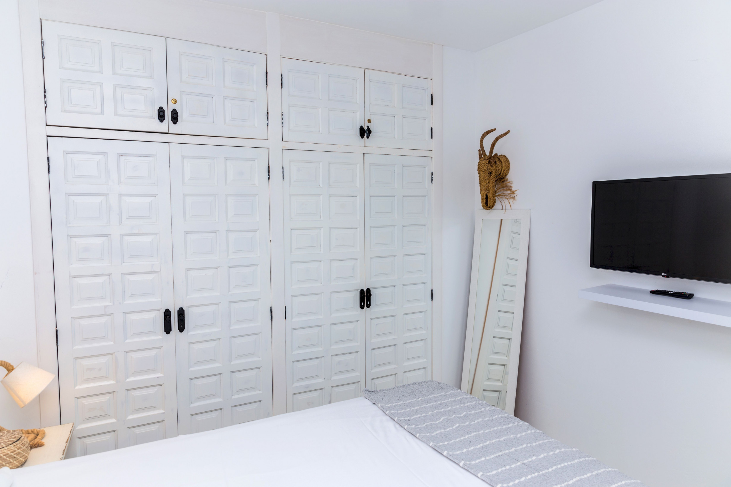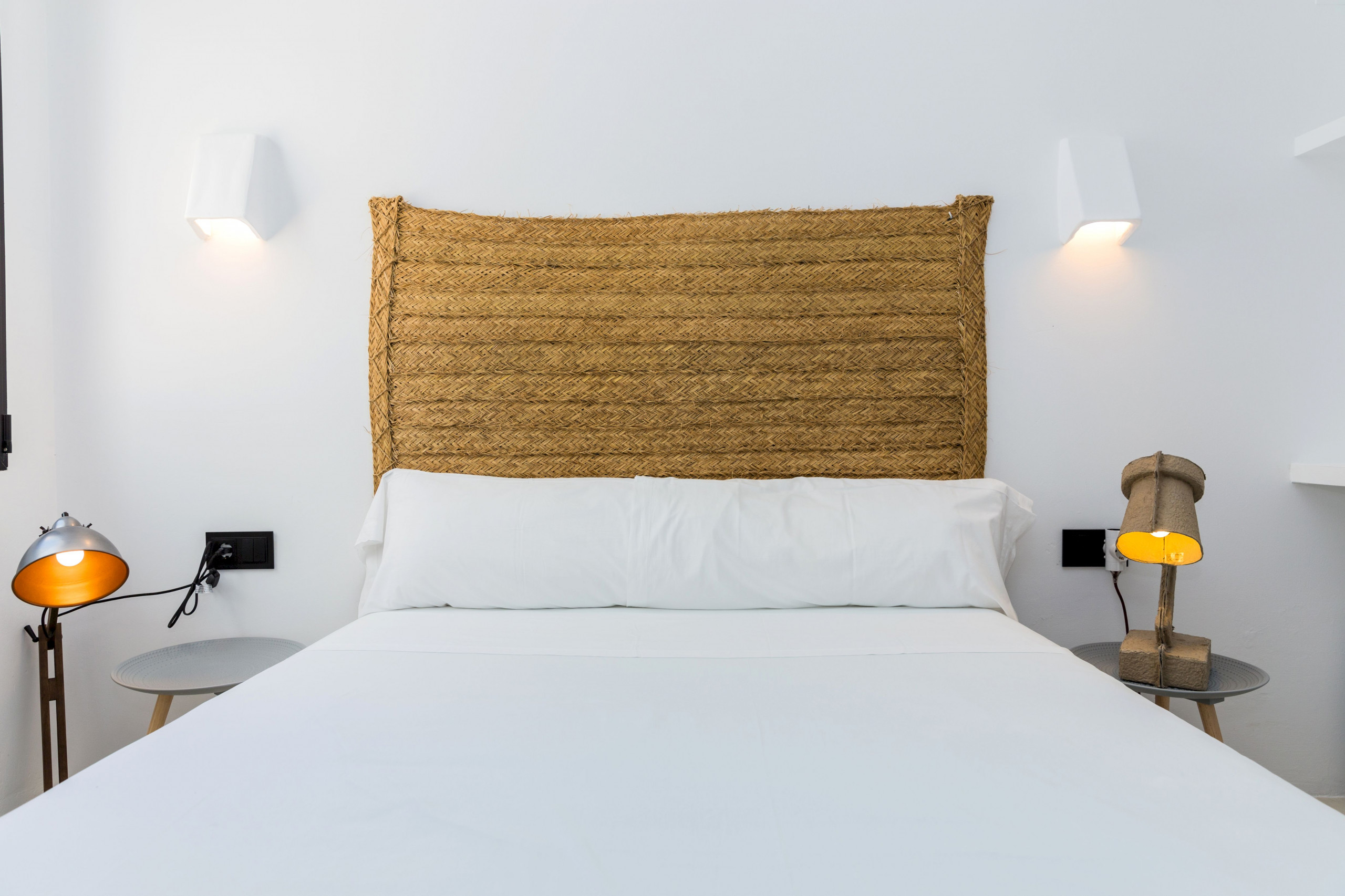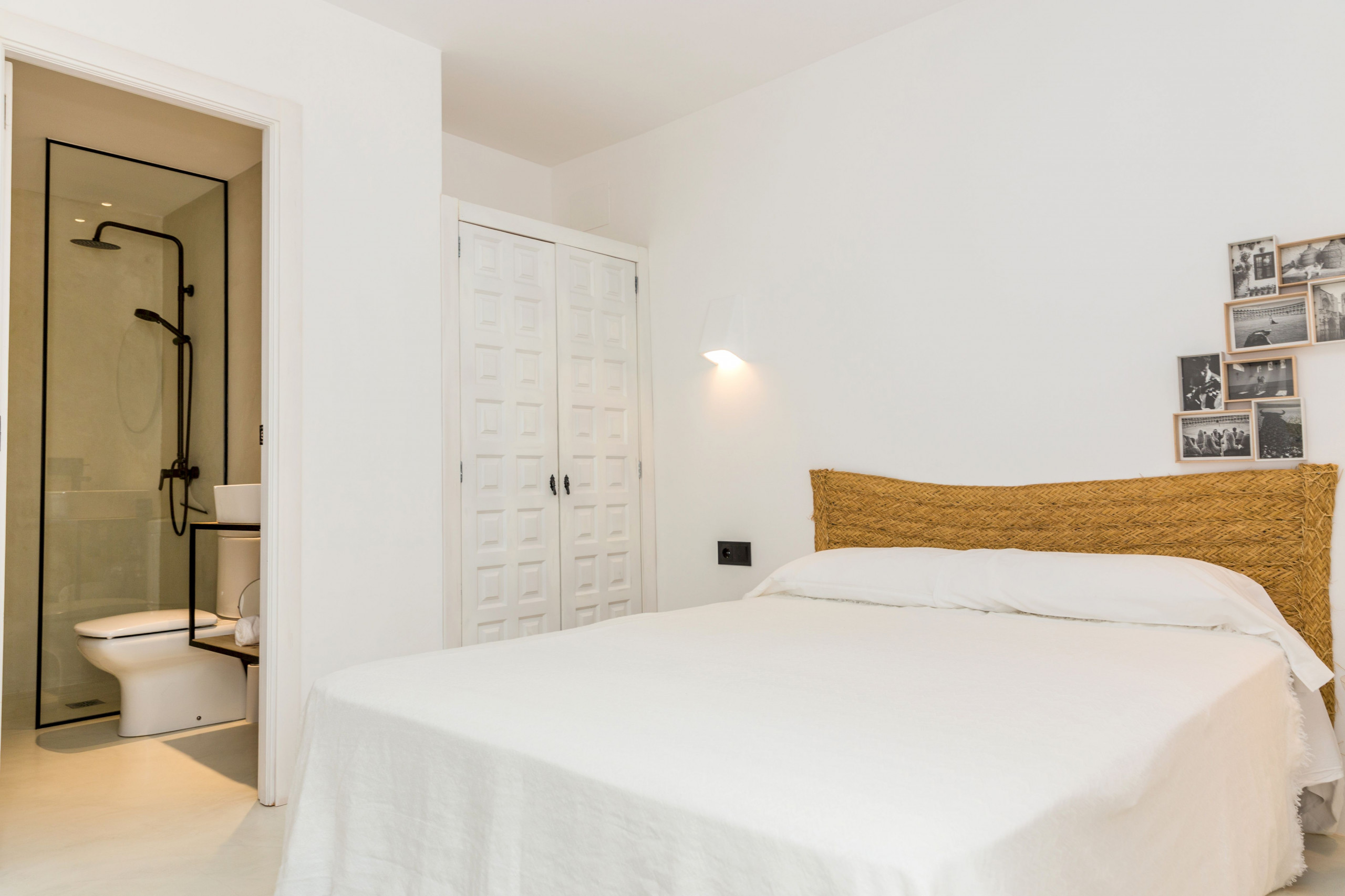 En la planta principal, a la que se accede directamente desde la calle, la villa ofrece un luminoso salón con un amplio sofá modular para relajarse, aire acondicionado, Smart TV y WiFi gratis. Los grandes ventanales del salón dan salida a una estupenda terraza con hamaca, sillas y vistas al mar, desde la que se sube al maravilloso solárium con una zona chill out con cama balinesa e increíbles vistas. Junto al salón, el espacio abierto da lugar a una elegante mesa de comedor de madera y la cocina con barra americana, que está totalmente equipada con inducción, microondas, horno, lavavajillas, menaje completo y utensilios de cocina. En esta misma planta hay uno de los aseos y una habitación de matrimonio con baño en suite. El segundo aseo y los otros tres dormitorios, cada uno con su baño en suite, se encuentran en la planta inferior. Todos los dormitorios cuentan con camas de matrimonio tamaño queen, baño en suite y aire acondicionado.