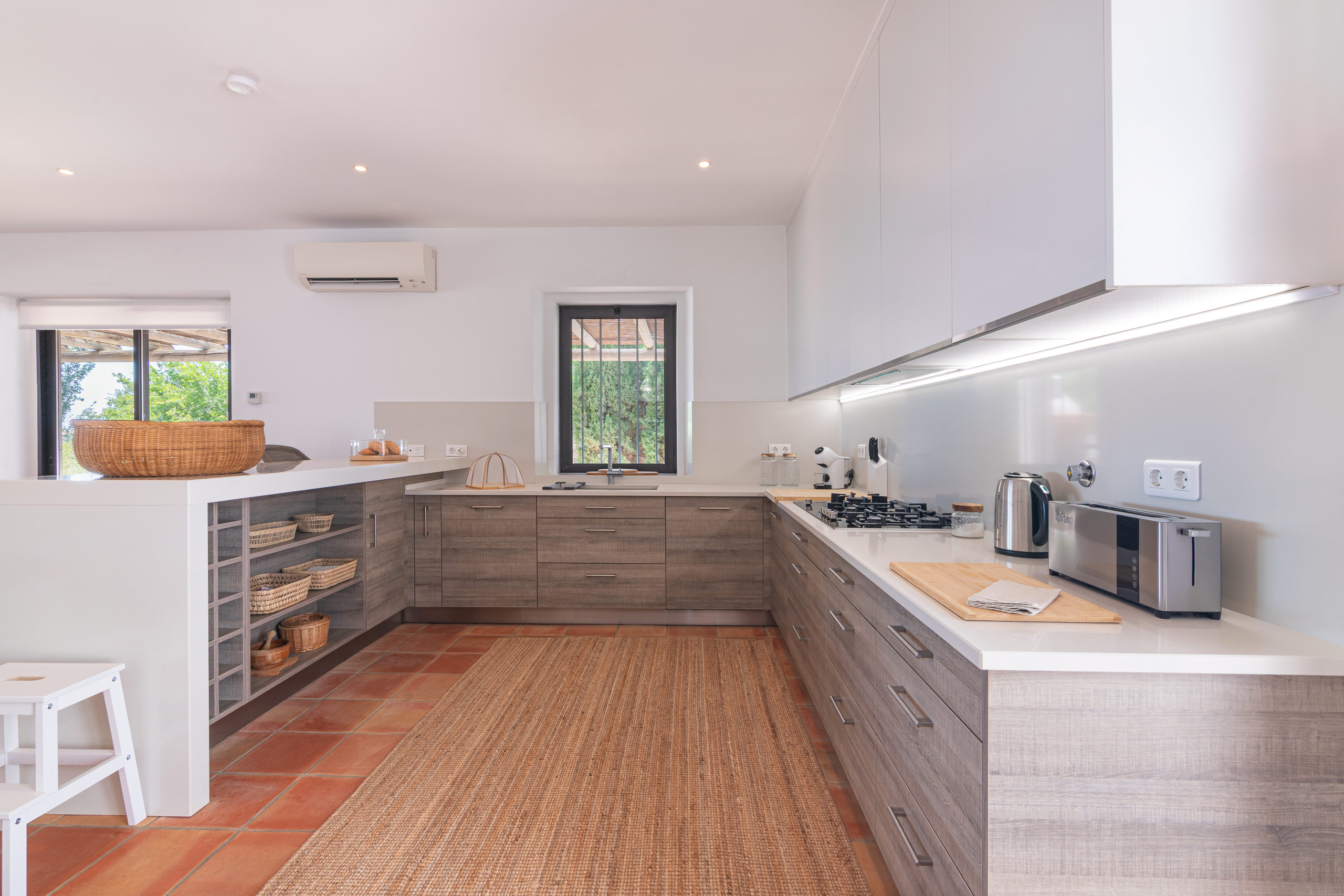En el interior, la comodidad contemporánea se encuentra con la vida fácil. La cocina de planta abierta viene completamente equipada con placa de inducción, lavavajillas, máquina de café y todos los elementos esenciales para la comida familiar. El WiFi de alta velocidad y el aire acondicionado garantizan que todos se sientan como en casa, mientras que los interiores luminosos y espaciosos crean una atmósfera cálida y acogedora.
