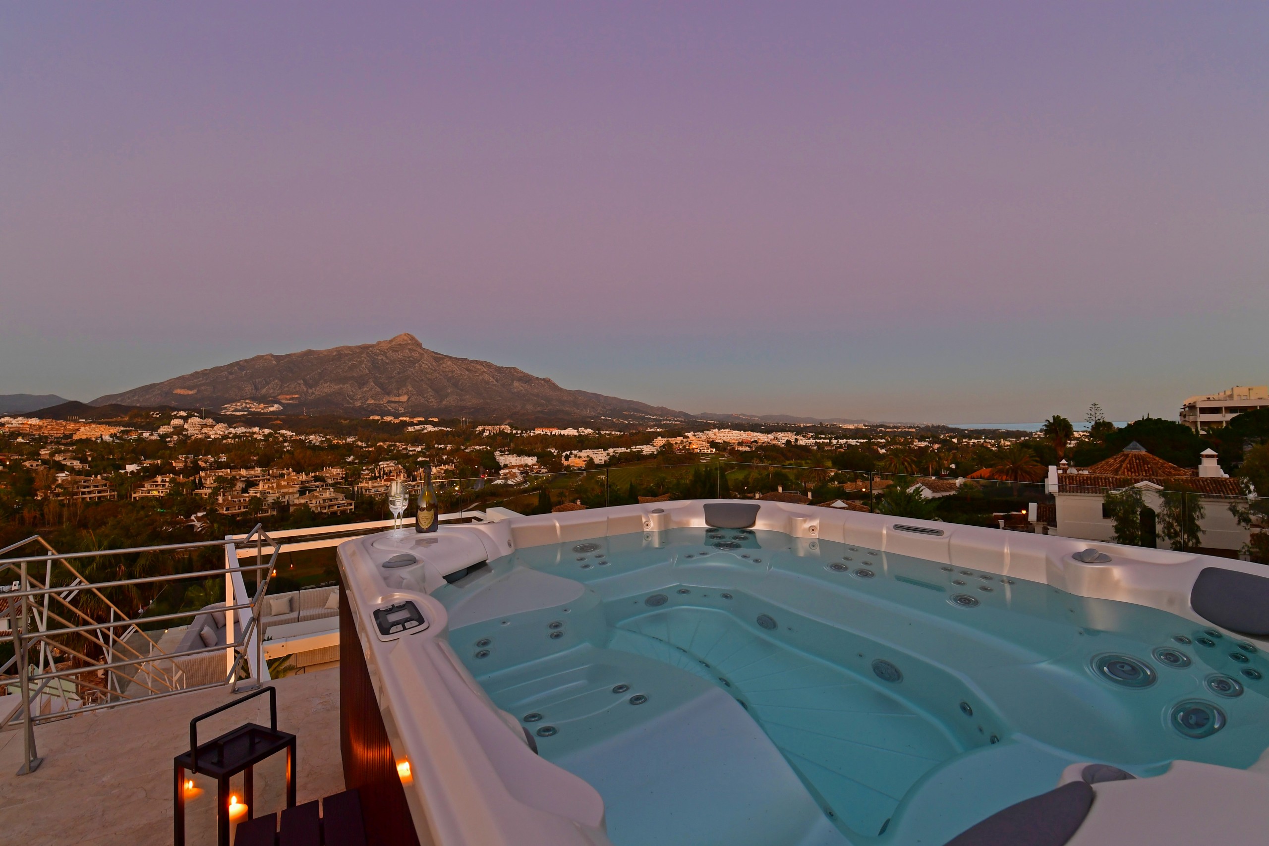 En el nivel de la terraza superior hay un jacuzzi, que es el lugar ideal para terminar un día exitoso.