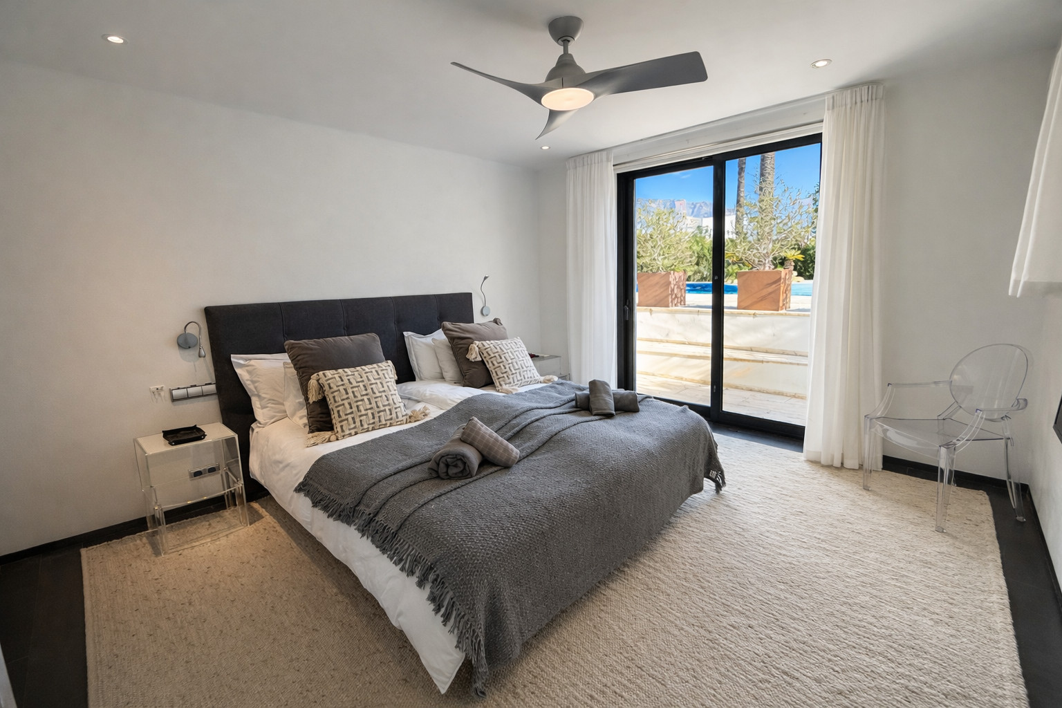 La villa está construida en un encantador estilo español alrededor de un patio interior con un olivo de 400 años que le da a la casa su propio espíritu y atención. Hermosos suelos de piedra, paredes de vidrio, ventanas del suelo al techo y una construcción de calidad con una decoración minimalista de buen gusto, hacen de esta casa una experiencia única para unas vacaciones inolvidables.