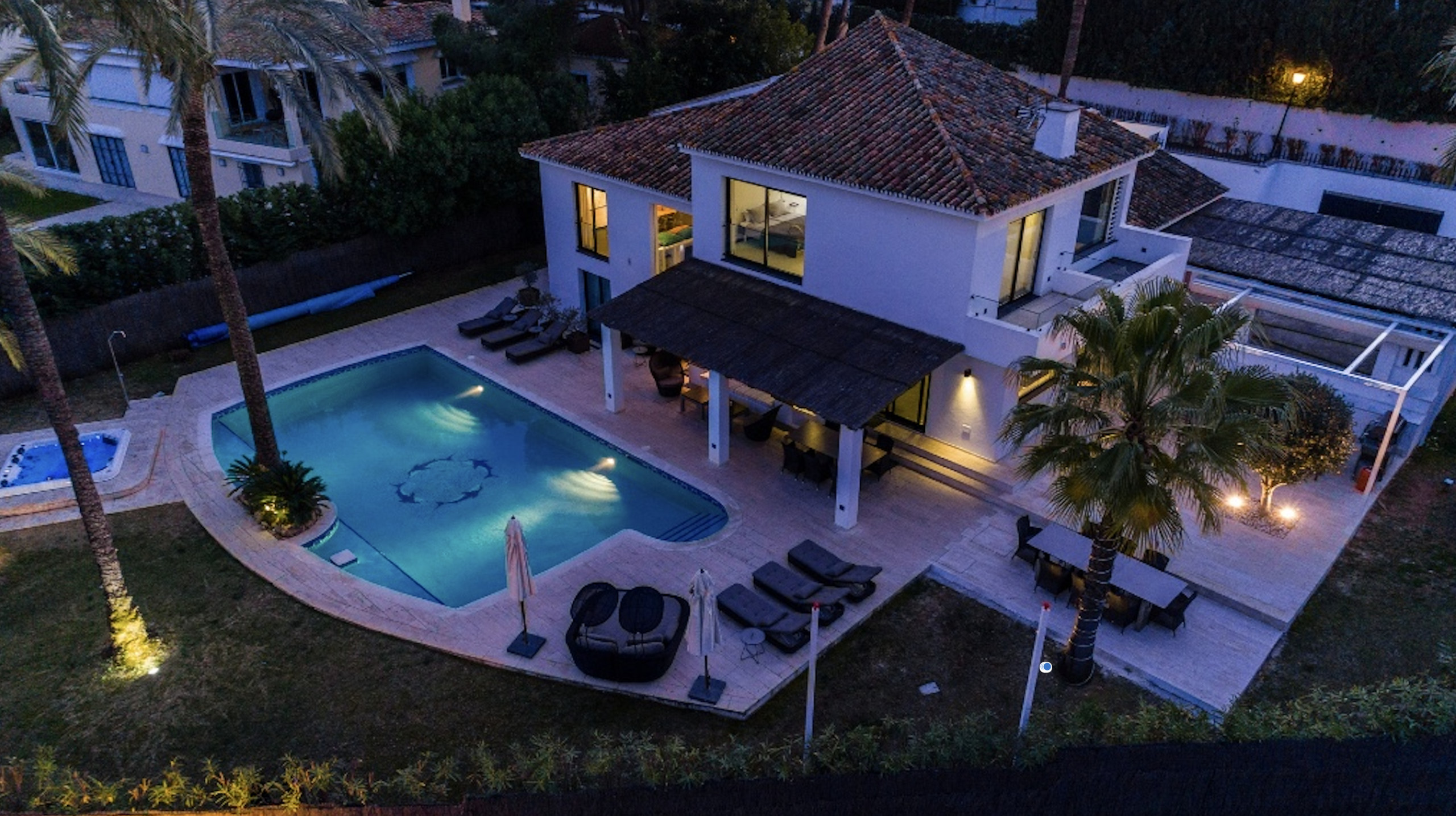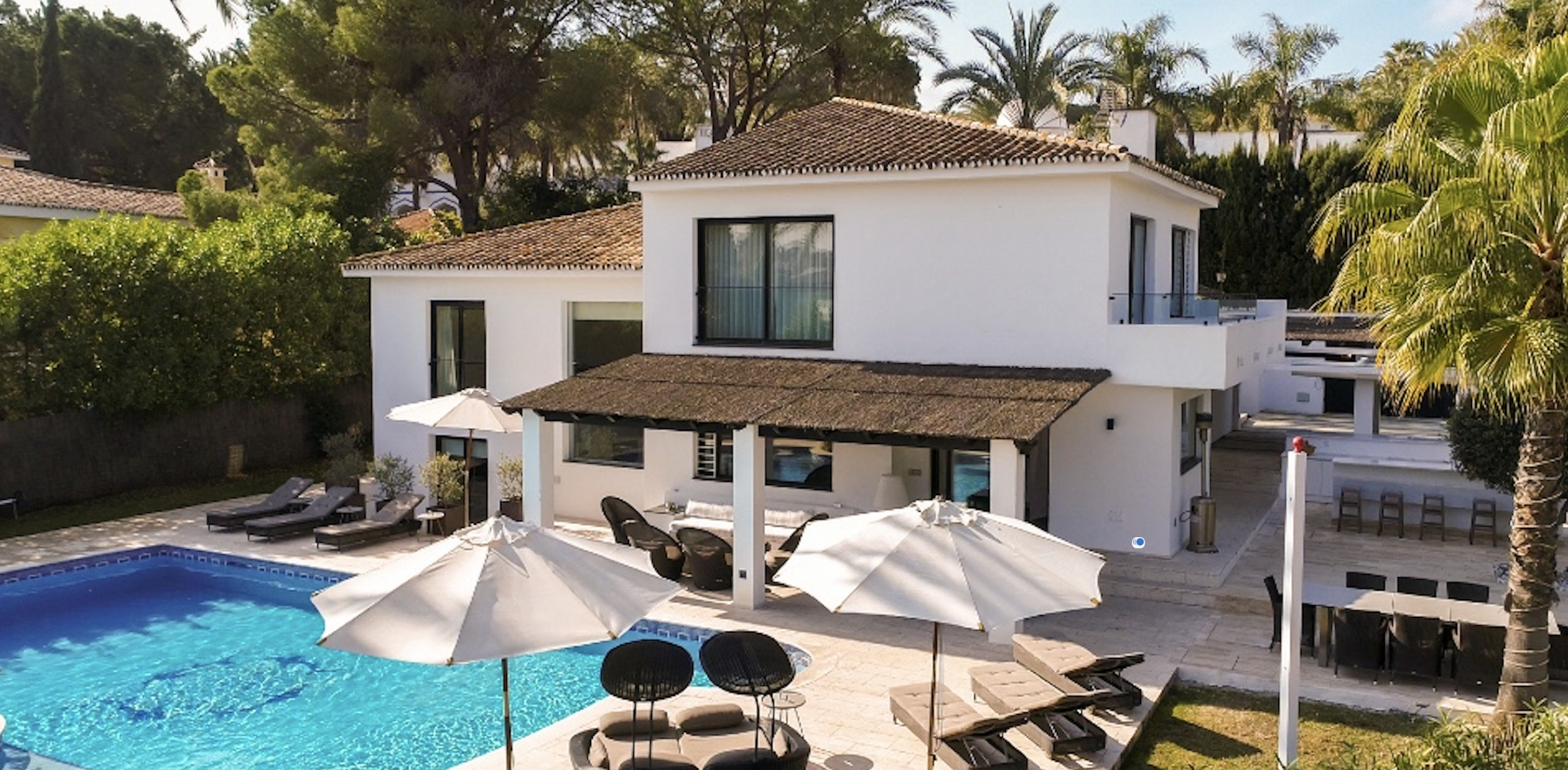 La casa está ubicada a pocos minutos en coche de Puerto Banús y Marbella. A unos 500 metros de la casa hay una pequeña galería comercial con varios restaurantes, heladería y supermercado.