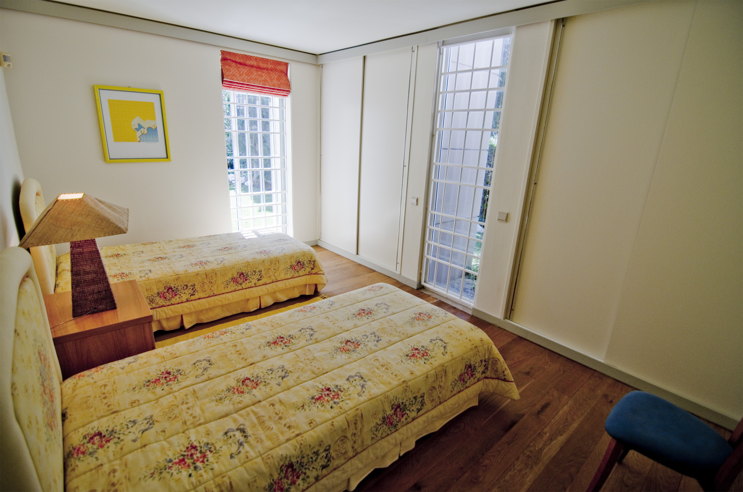 En la sala, tenemos tres zonas distintas: zona de comidas con 8 lugares y 2 zonas de estar con TV por cable y WIFI – una con 3 sillones individuales y otra con 2 sofás y 2 sillones donde podrá disfrutar de una agradable chimenea para los días más fríos o de los grandes ventanales con vista al jardín y campo de Golf.
