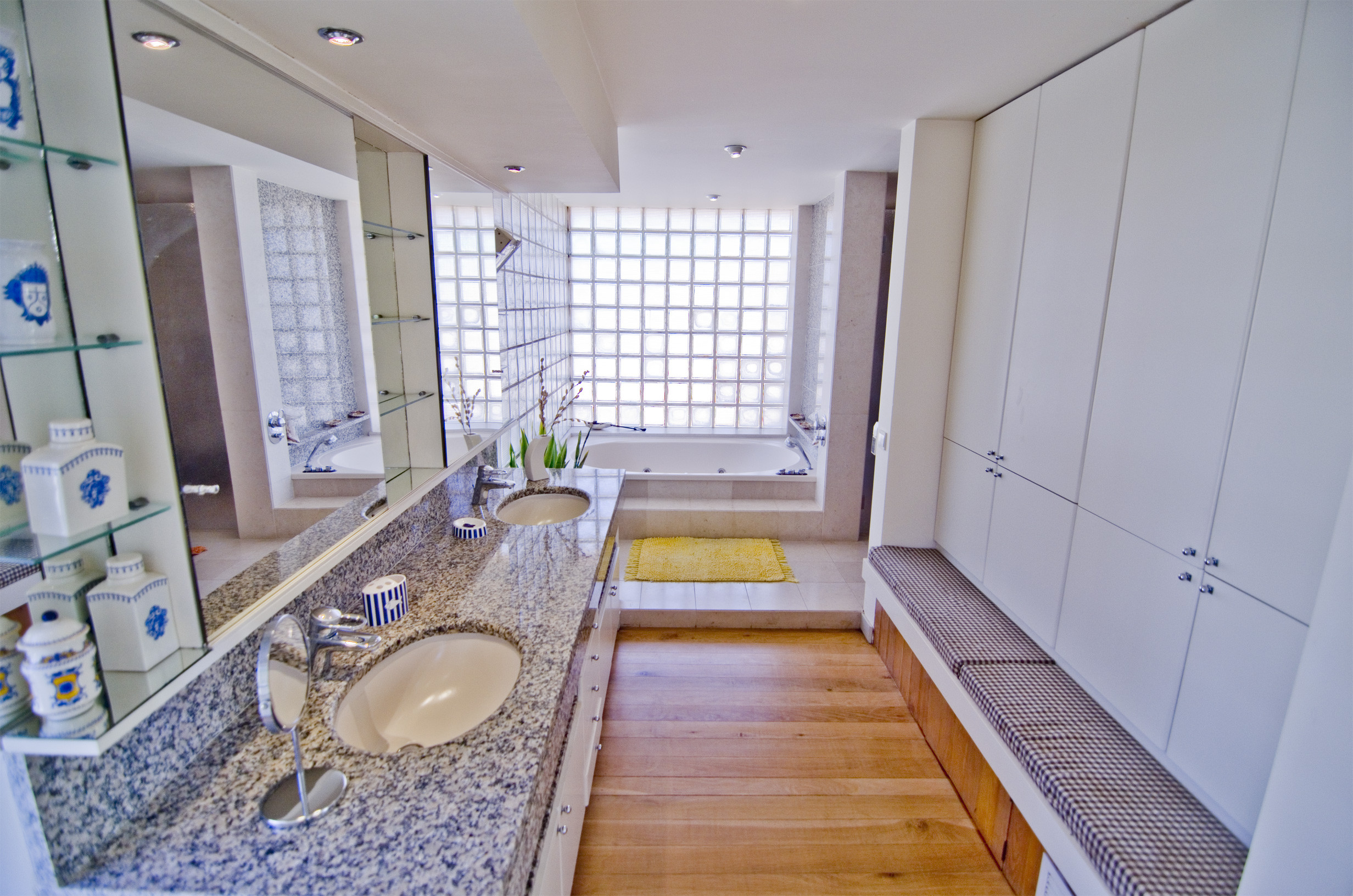 1er piso - Suite principal con cama super king, vestidor con 2 armarios, cuarto de baño en espacio abierto con bañera de hidromasaje y ducha separada;