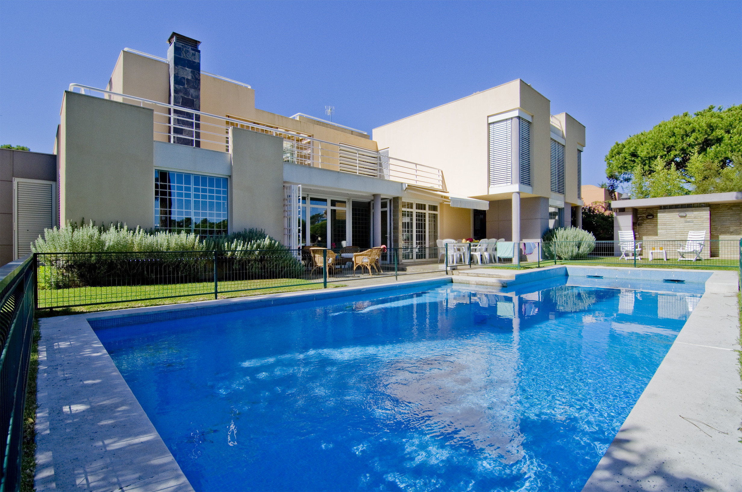 La zona exterior de esta vivienda está compuesta por un jardín con césped, que se une a una terraza donde podrá disfrutar de unas agradables comidas al aire libre y vista al campo de Golf, con sombra proporcionada por toldos eléctricos sobre la terraza. Cuenta además con una agradable piscina con protección para niños integrada, con una amplia oferta de equipamiento de exterior y un práctico barbacoa de carbón. Tiene también un baño de servicio en el exterior.