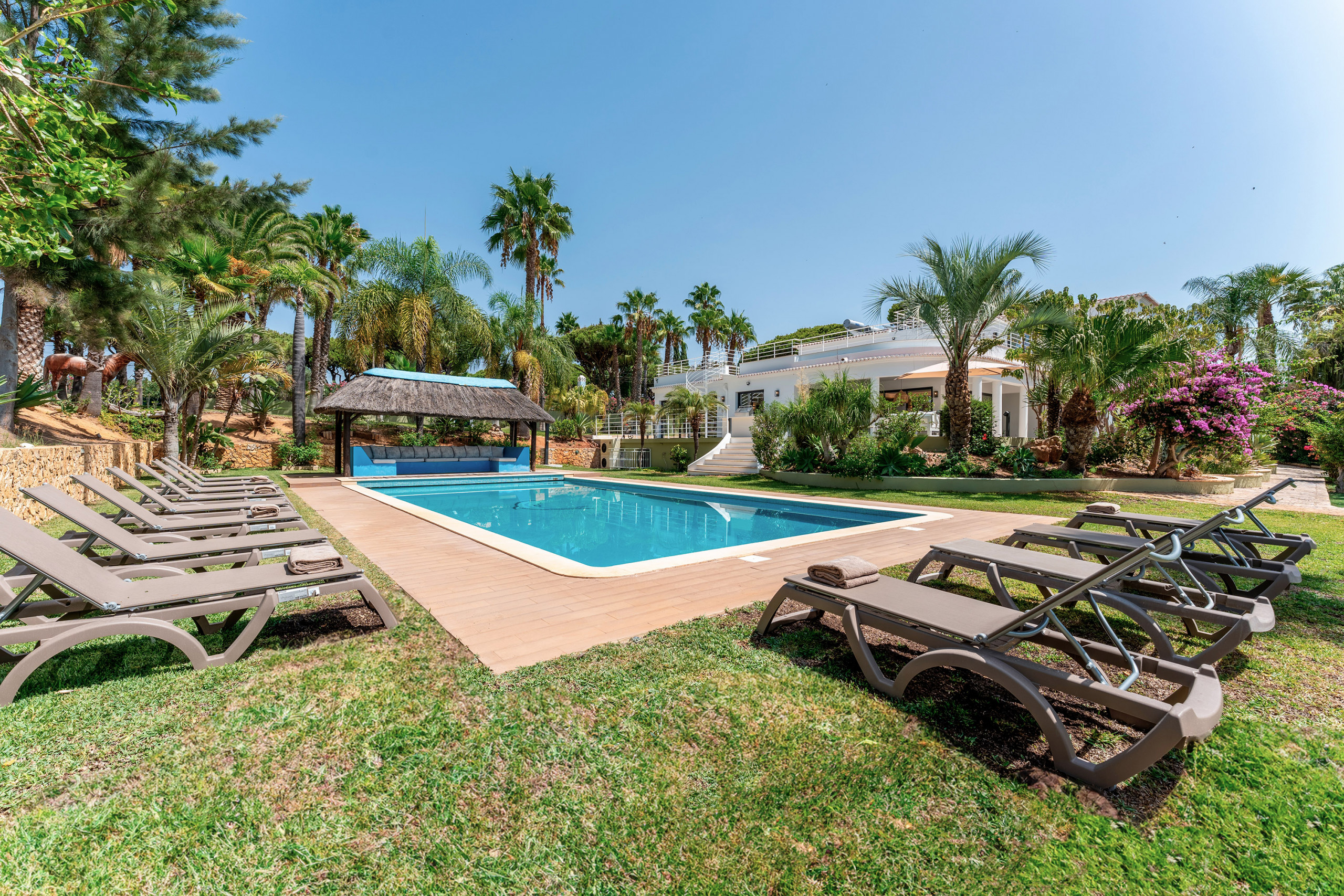 El exterior es magnífico, las innumerables palmeras y los hectáreas de césped contribuyen al sentimiento tropical del jardín, aliado a una gran piscina de 12 metros de longitud por 6 metros de ancho y profundidades entre 1 metro y 2,2 metros y al menos 12 tumbonas al lado. La estructura de aspecto natural cercana proporcionará una sombra fresca en los días calurosos de verano.