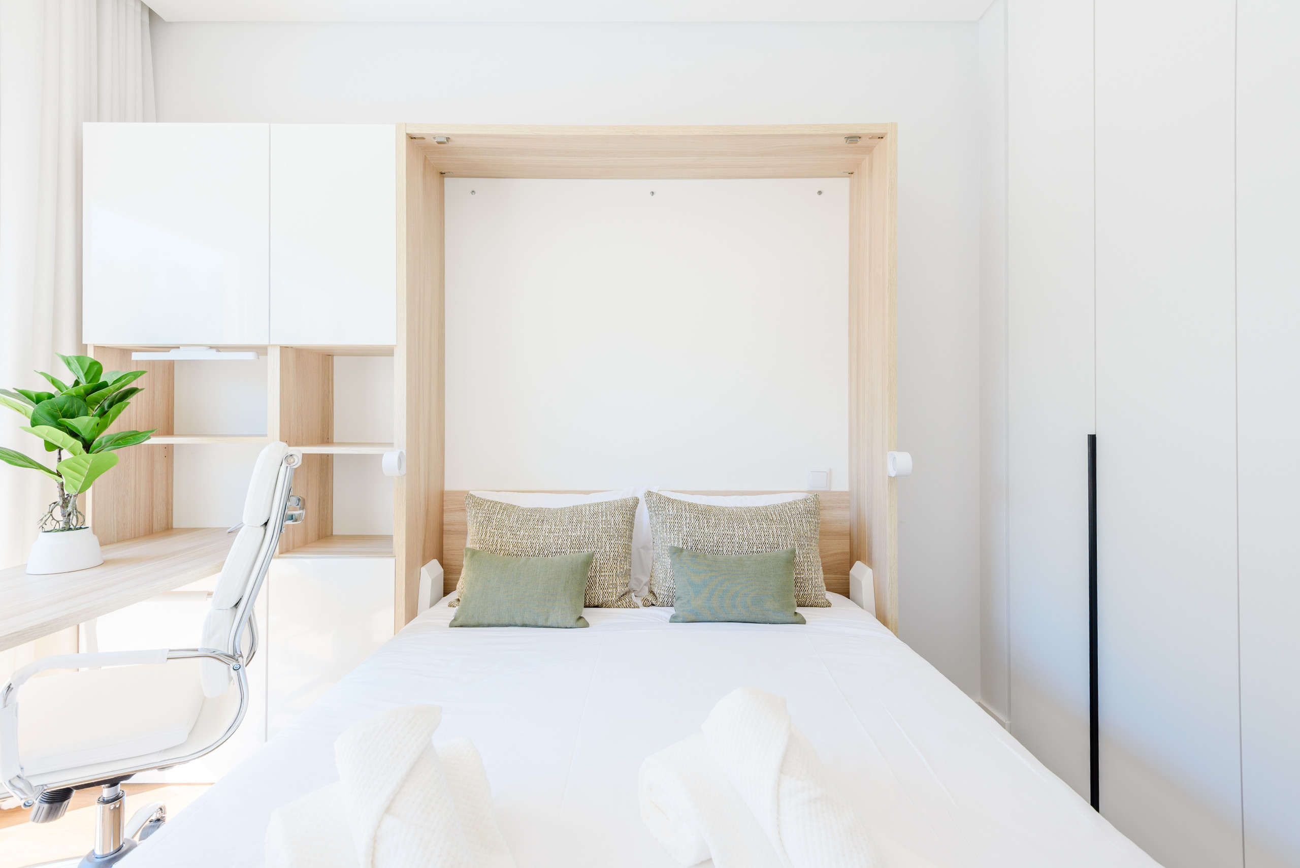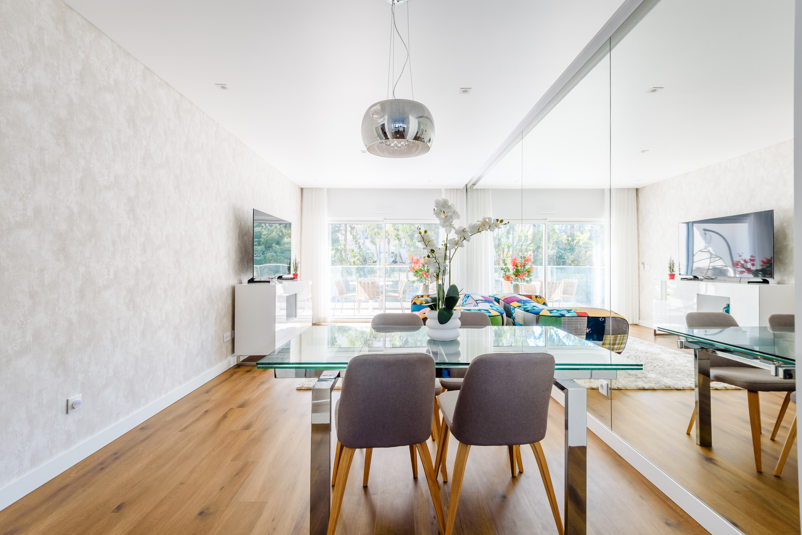 Conçu pour accueillir jusqu'à quatre invités, le bien présente un espace de vie ouvert et lumineux avec des finitions de haute qualité. De grandes fenêtres laissent entrer la lumière naturelle, tandis que l'exposition plein sud renforce le sentiment d'espace et de chaleur. L'espace de vie donne accès à un balcon privé, idéal pour des matinées détendues ou pour se relaxer après une journée à la plage.