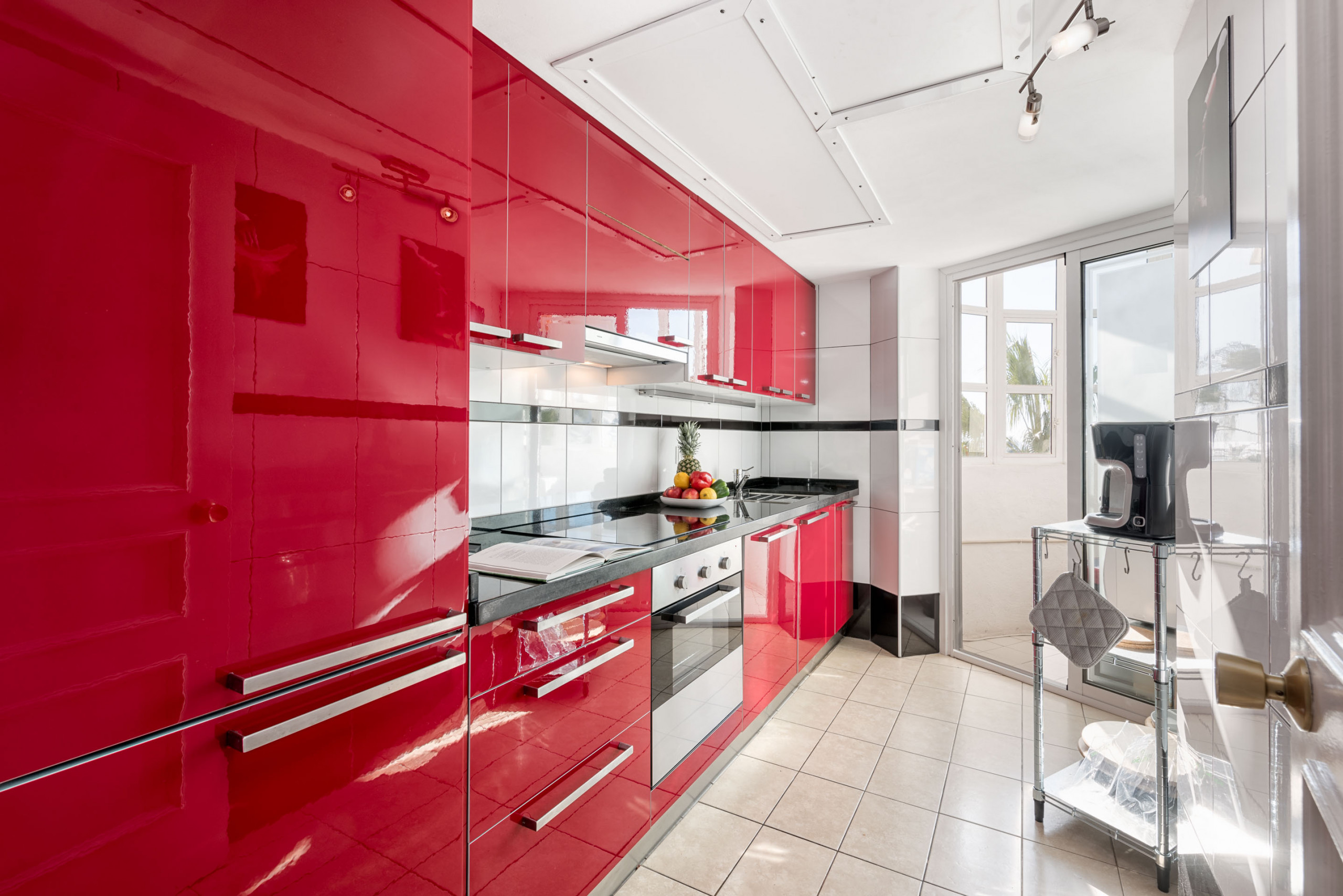 The rental apartment is very spacious with its 110m2 and can accommodate up to 6 persons. Kitchen is fully equipped and there is plenty of room in the airconditioned living room which contains large sofa, Smart TV, High-speed internet, and a lovely dining area with seating for 6 persons.
