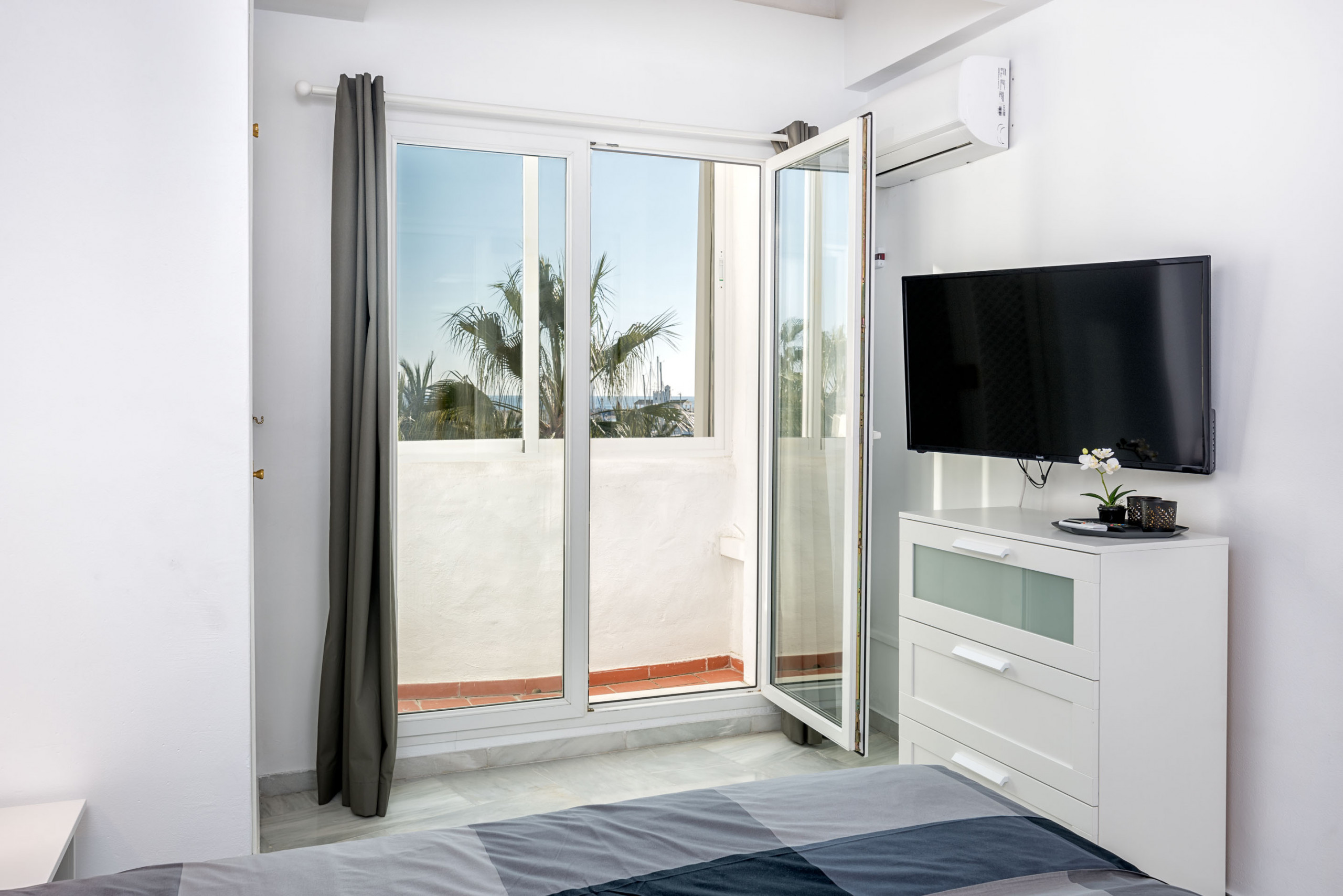 Bedroom 1: King Size double bed (180x200cm), air-condition, wardrobe, bathroom with shower en-suite and hairdryer, views to the Marina.