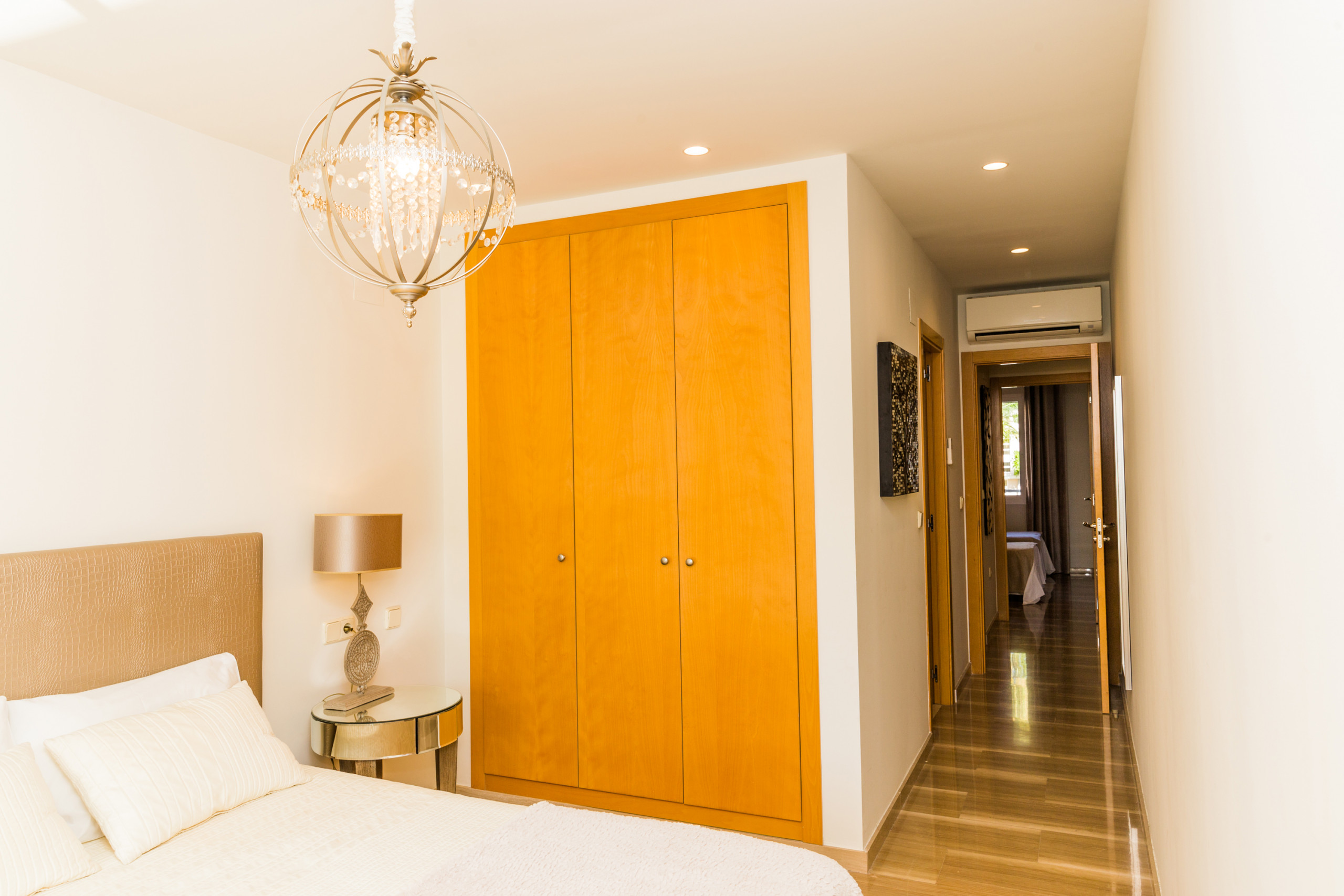 Las fotos son fieles a la realidad y reflejan con exactitud su buen estado de conservación. Aunque con algo de retraso se entregó en perfecto estado de limpieza. El apartamento dispone de dos habitaciones, una de ellas de matrimonio con baño en suite, la otra cuenta con dos camas individuales. Tiene una estupenda terraza para comer al aire libre y el aire acondicionado nos ha ayudado a soportar las altas temperaturas. La urbanización interior, con piscina y gimnasio, cuenta con unas hermosas y cuidadas zonas verdes. La ubicación está a unos 5 minutos de la Playa del Arenal y el bullicio de sus locales nocturnos pero por las noches es totalmente tranquila y se puede dormir a la perfección. La plaza de garaje sirve hasta para un coche grande pero se aparca mejor si llevas uno pequeño o mediano.. La atención del propietario ha sido atenta, amable e impecable para resolver dudas o pequeños problemas de funcionamiento. En definitiva una estancia de 10 y un apartamento totalmente recomendable.