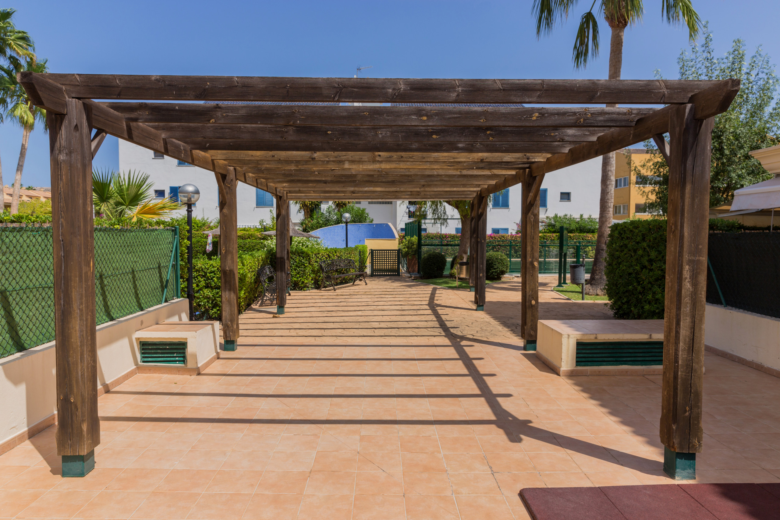 Dans les parties communes de la résidence se trouvent le jardin avec une grande piscine pour adultes et une plus petite pour enfants, un terrain de padel et une aire de jeux pour les plus petits.