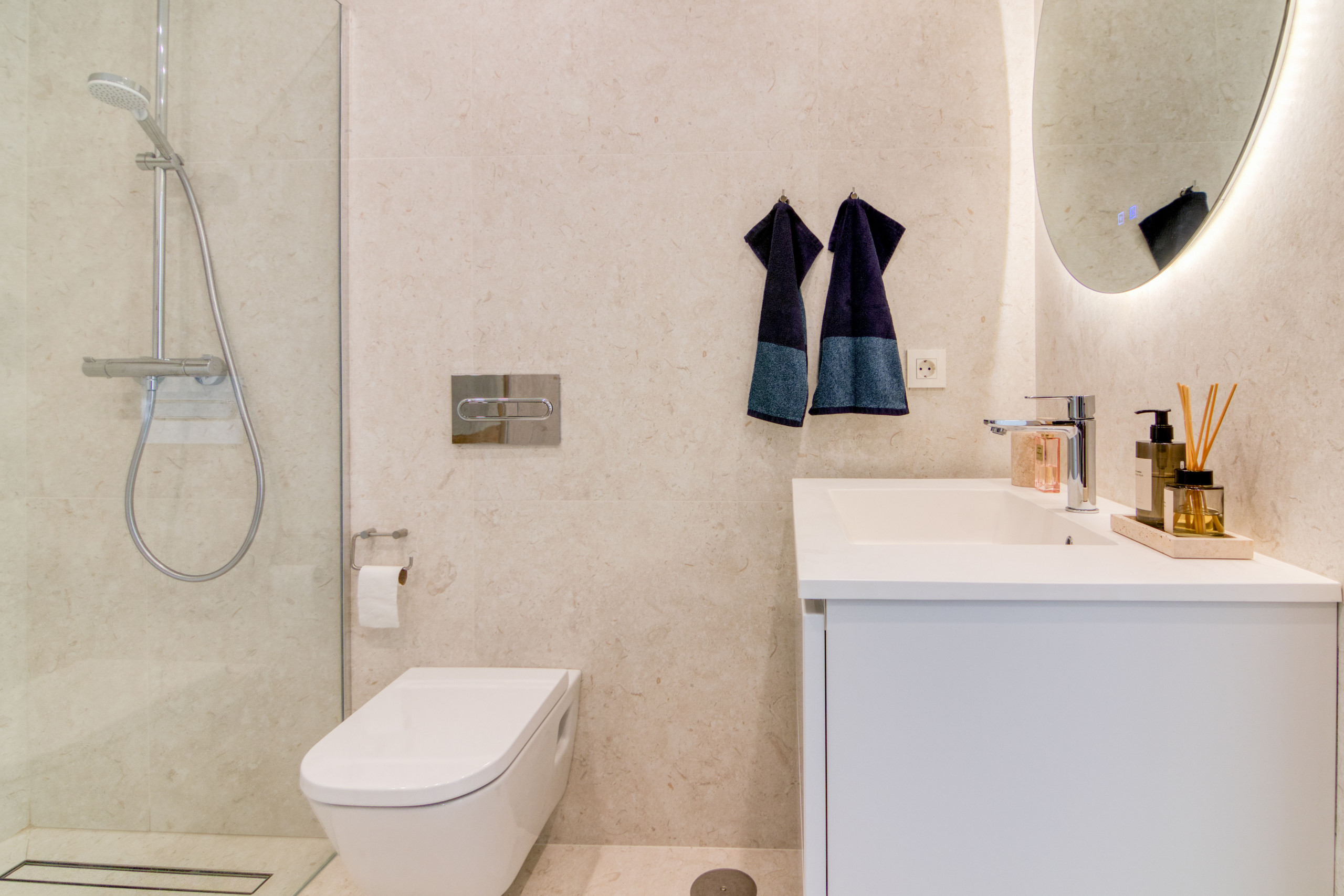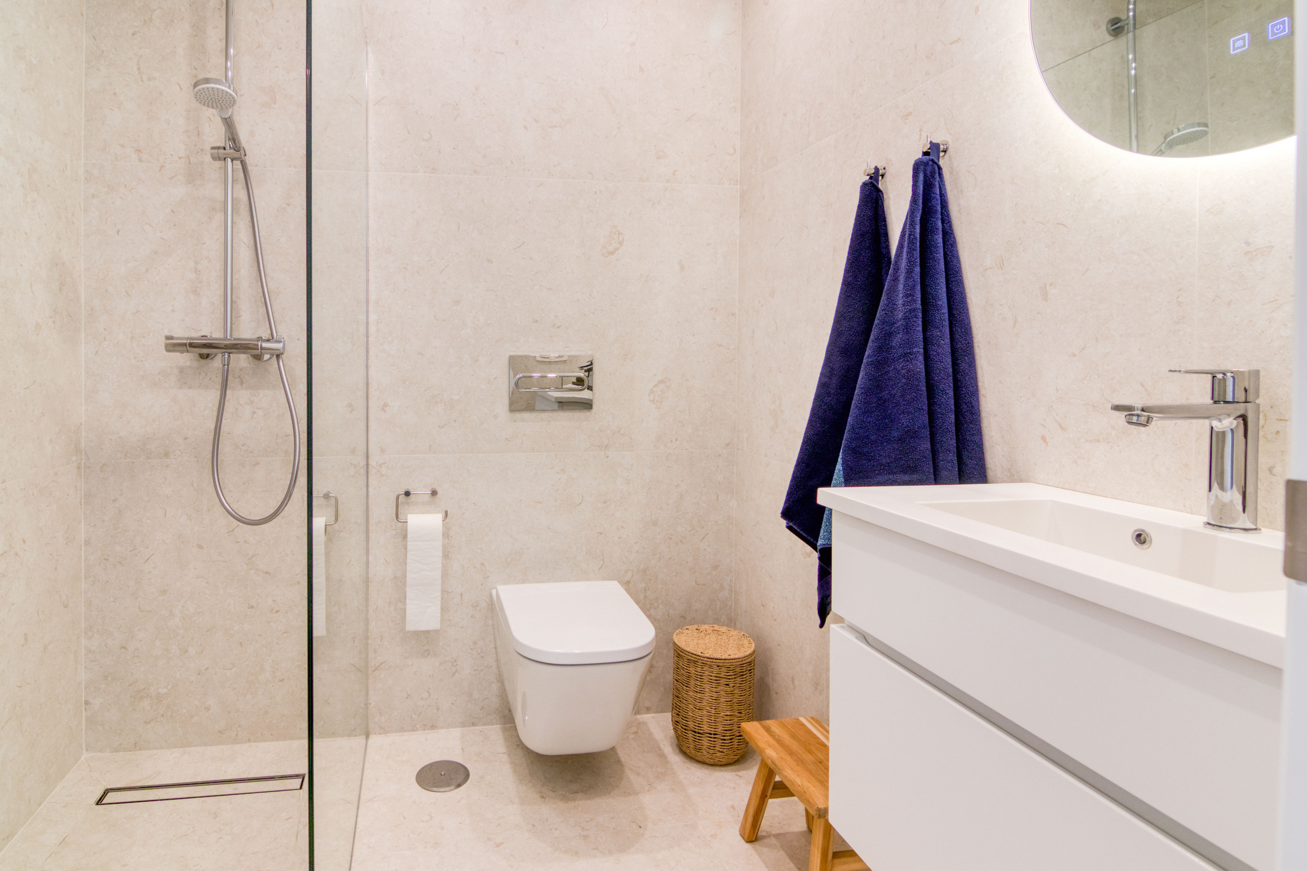 The apartment is tastefully furnished and contains what you need for a lovely holiday. There is 2 bedrooms, 2 bathrooms, kitchen and a living room.