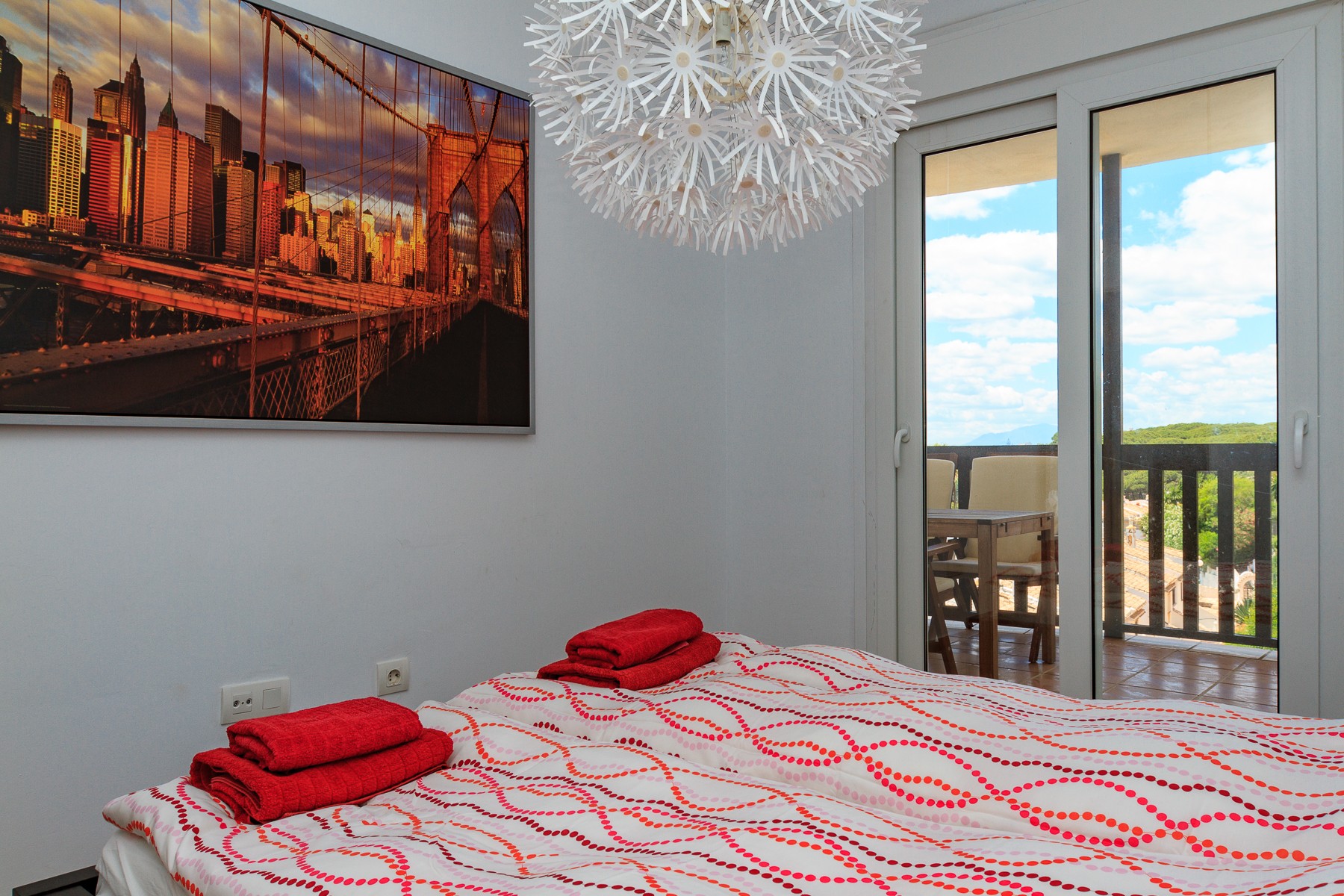 The apartment is conveniently furnished for 1-4 persons with 2 bedrooms, both with double bed, wardrobe, air conditioning and direct access to terrace with sea views. Master Bedroom has a bathroom en-suite.