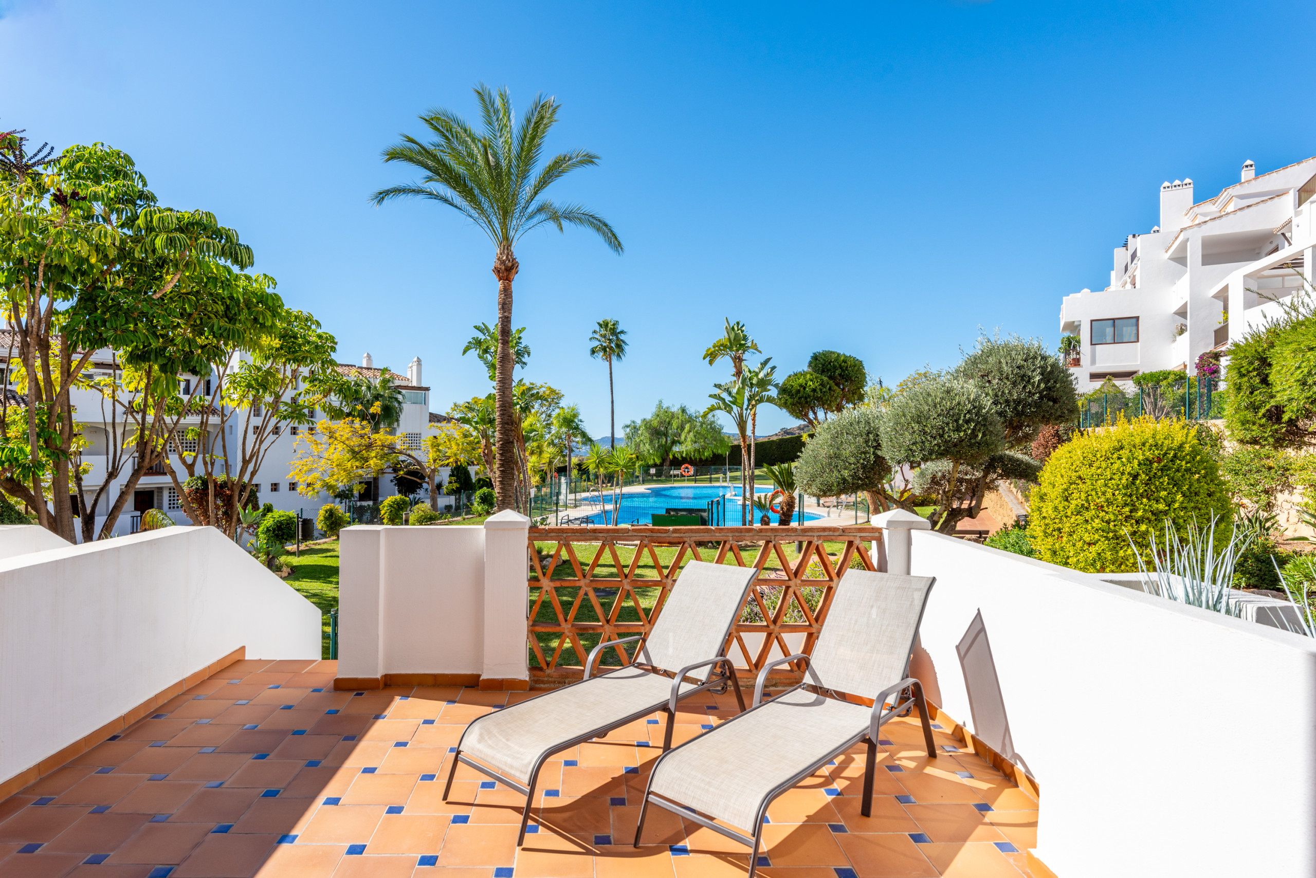 Discover a tastefully furnished 83m2 apartment in Mijas, near the exclusive area of Marbella. This tranquil residence has a 40m2 front terrace offering views of the swimming pool.