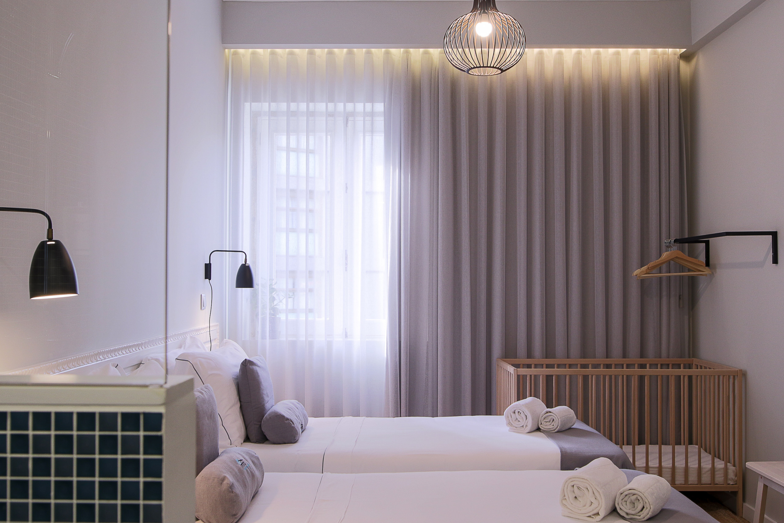 Every room had an en suite bathroom w a great shower (and an additional common area bathroom), plus they provided a crib and toys in a play area, which was perfect for the kids. There’s 2 twin beds in each room that can be configured into one queen if needed. Great location for walking Porto and felt safe the entire time. Great cafe on the corner to boot. Thanks for a great stay! Christine (USA)