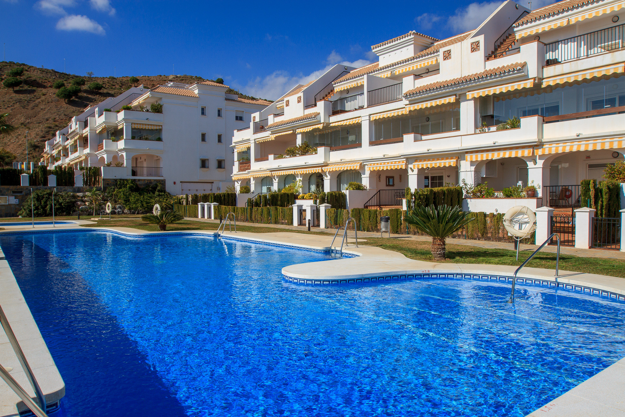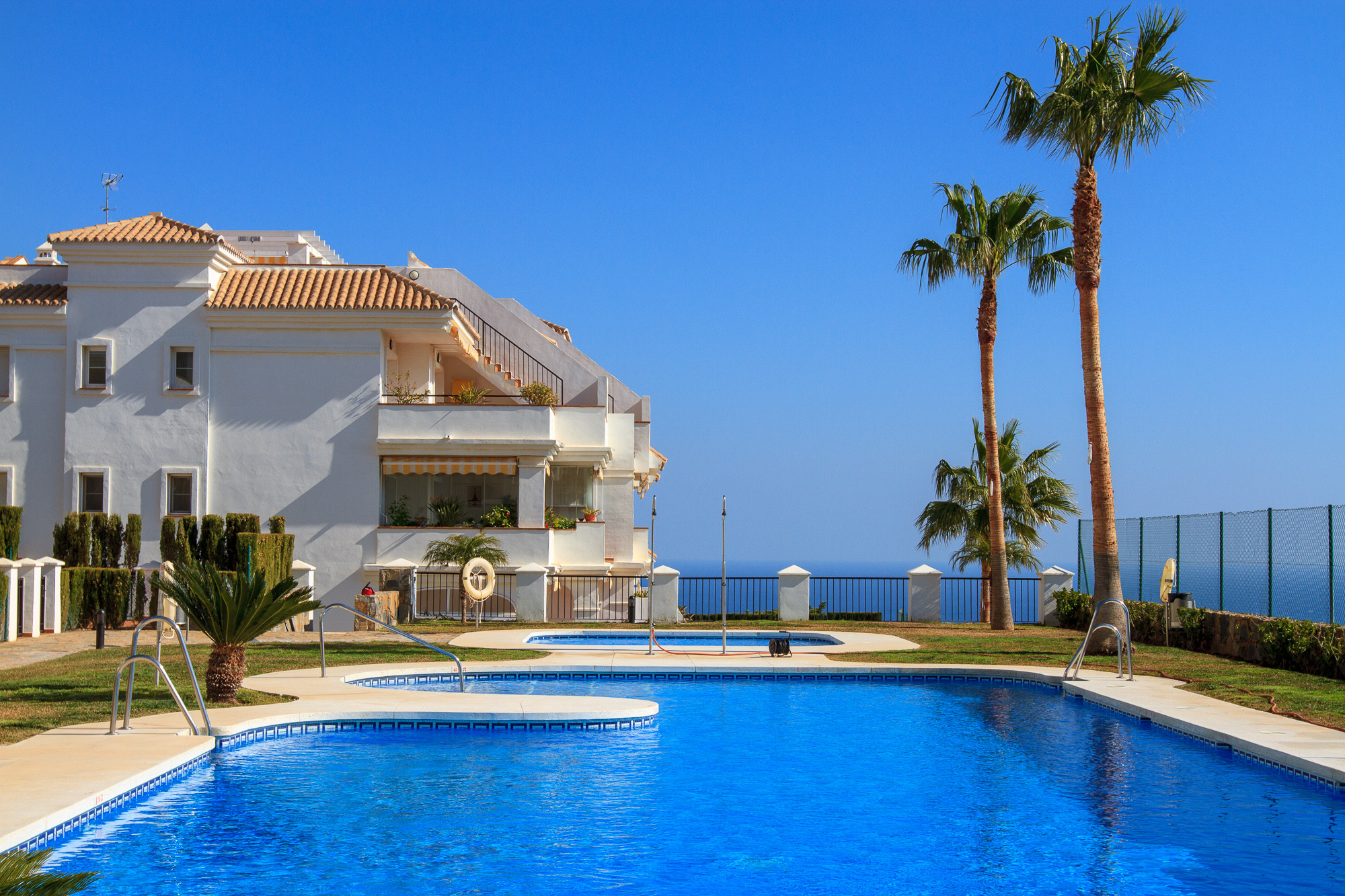 The complex has a saltwater pool (50% salt, 50% Chlor), 2 smaller pools that are suitable for children and two paddle tennis courts.