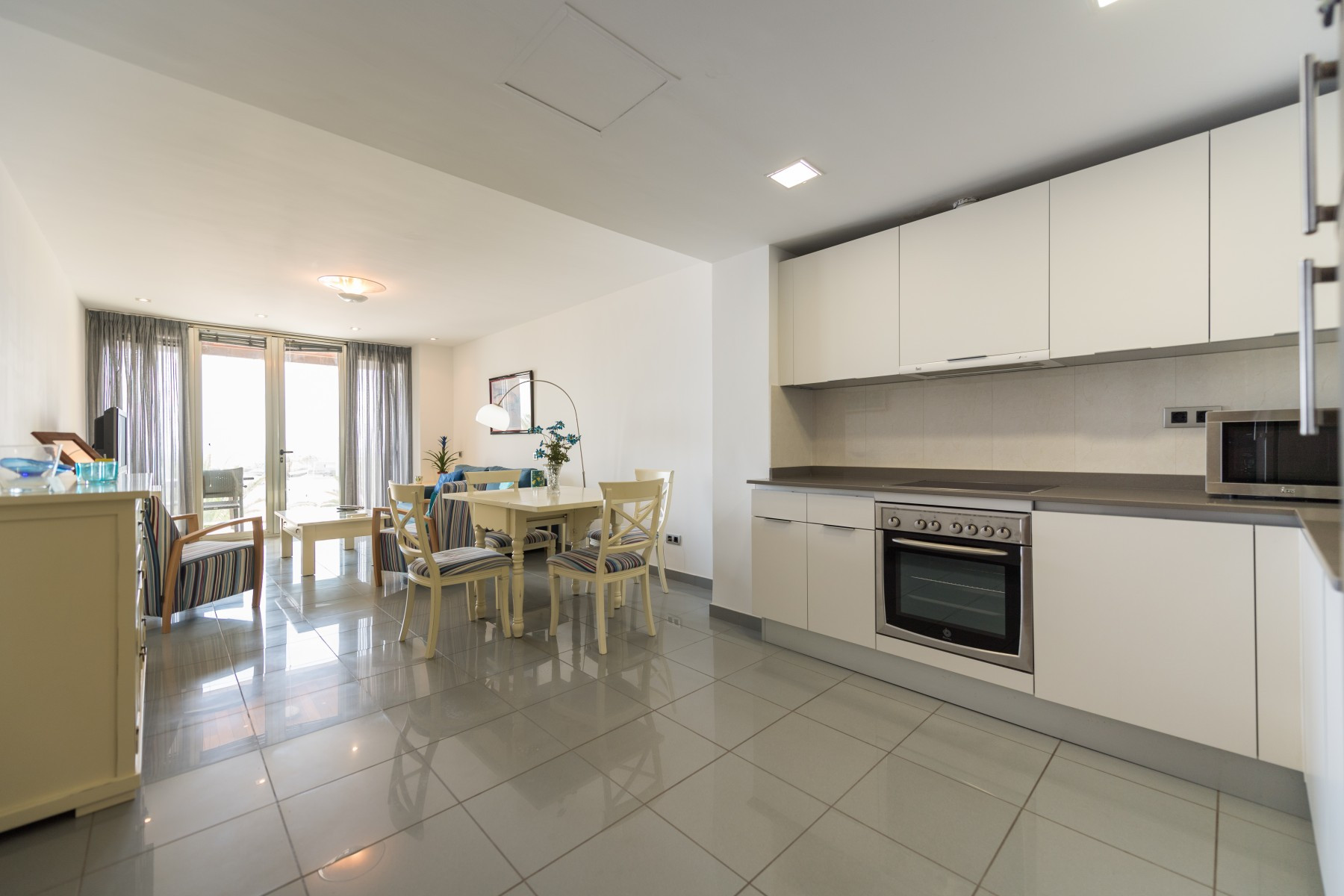 La ubicación es inmejorable con unas vistas espectaculares a la playa de las canteras El apartamento es enorme con dos baños Y el balcón hace las delicias para cenar o tomar un respiro viendo una puesta de sol