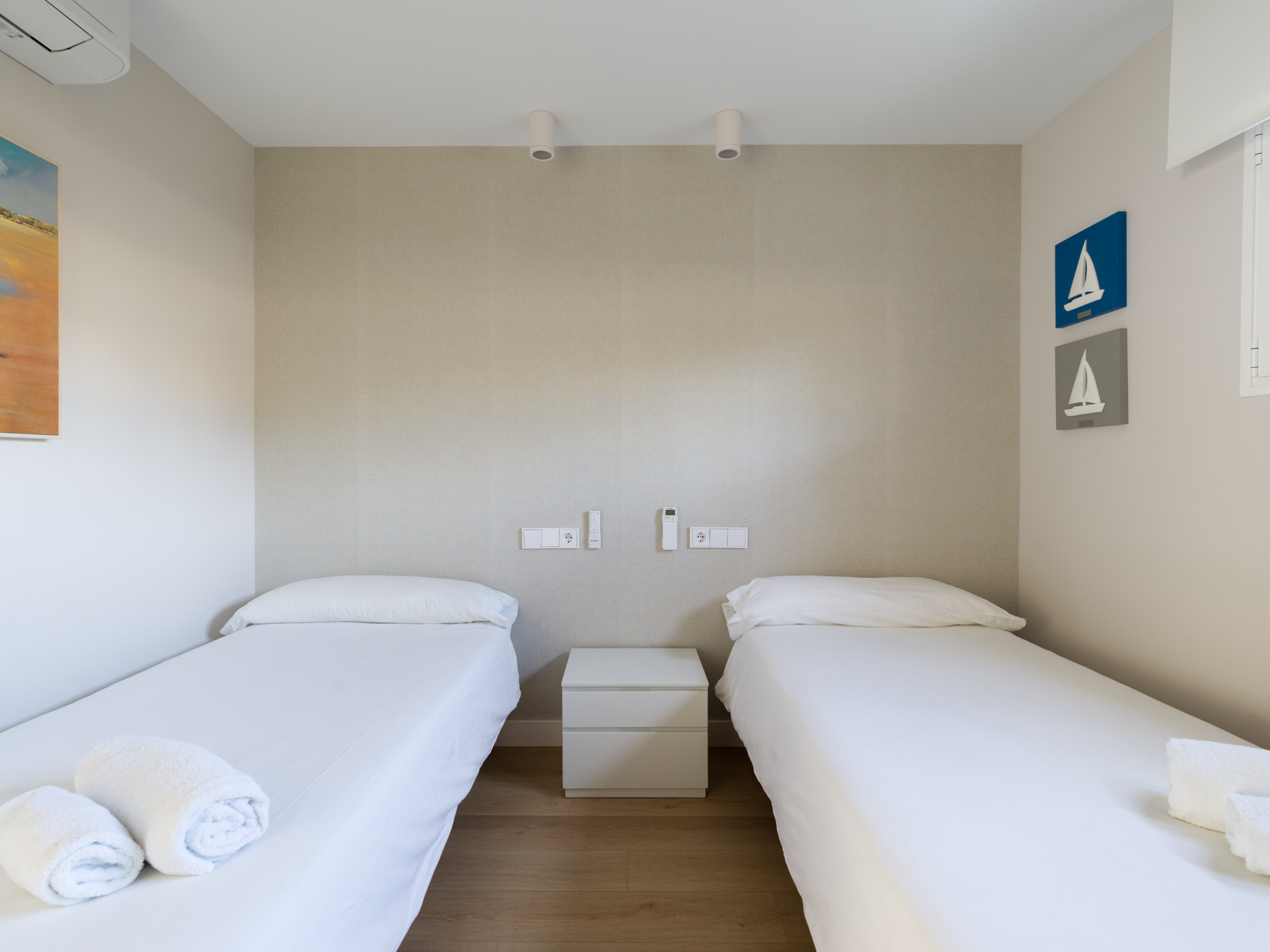Il dispose de deux grandes chambres doubles, l'une avec un lit double de 1,5 mètres de large et l'autre avec deux lits simples de 0,9 mètres de large, deux salles de bains complètes et un salon très spacieux. Il peut accueillir quatre personnes.