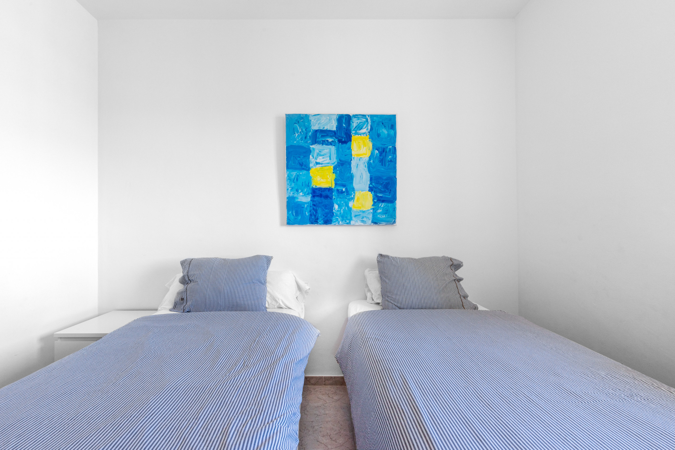 Bedroom 4: 2 Double beds, wardrobe, and air conditioning. Located on the grownd floor, with direct access to the pool area.
