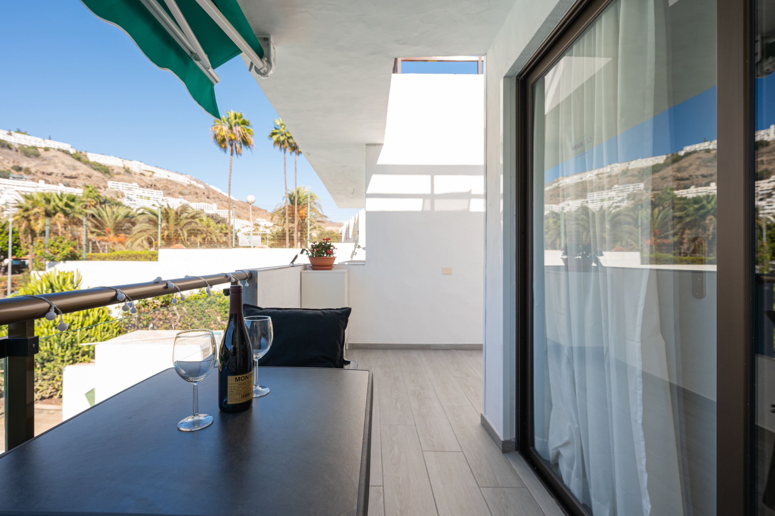 The apartment is truly fantastic and has everything you need. A kitchen, washing machine, air conditioning, and a swimming pool right outside. During our stay, we were the only ones using the pool. It's a truly wonderfully quiet location! Close to the beach and two supermarkets (Hiperdino & Spar). It's also very close to the quiet boulevard and the shopping center, with Mogan Mall just a 10-minute walk away. A truly top-notch location! Parking was a bit tricky with the rental car, but that's because parking is paid everywhere. The free parking spots are used by people who want to go to the beach. The owner is also truly amazing! He made sure we had everything we needed with our baby. A crib (paid), a baby chair, and a baby bath were also provided. These were bought new for us at no extra cost—that's what I call excellent service! The refrigerator was also stocked with water, and there were two welcome gifts waiting for us. You truly feel completely welcome here!