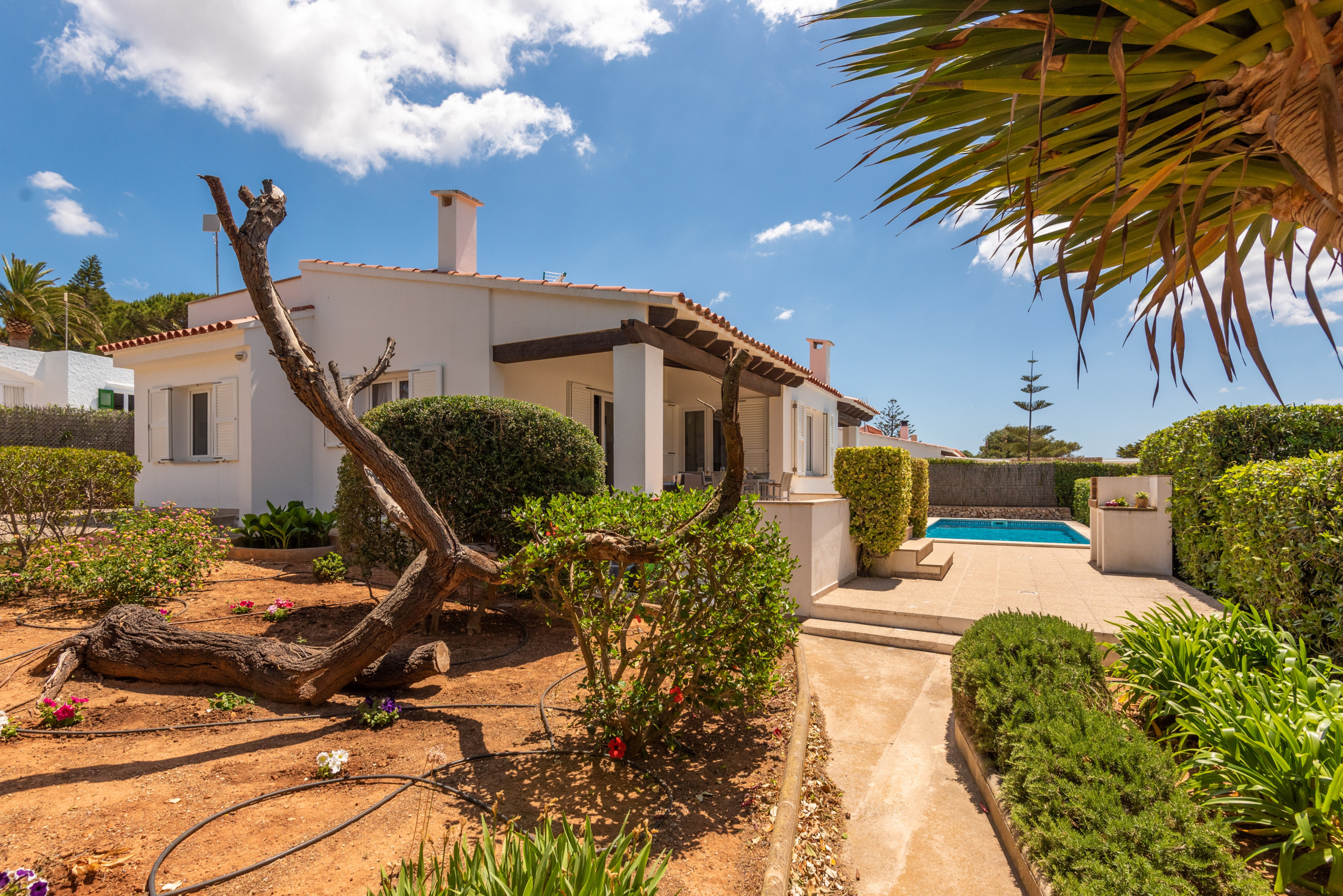 Belle villa située dans le quartier calme de Binisafuller, sur la côte sud de Minorque, dans la municipalité de Sant Lluis. À seulement cinq minutes de la Cala Binisafuller et d'une grande variété de petits bars et restaurants avec vue sur la mer où de délicieux plats sont servis.