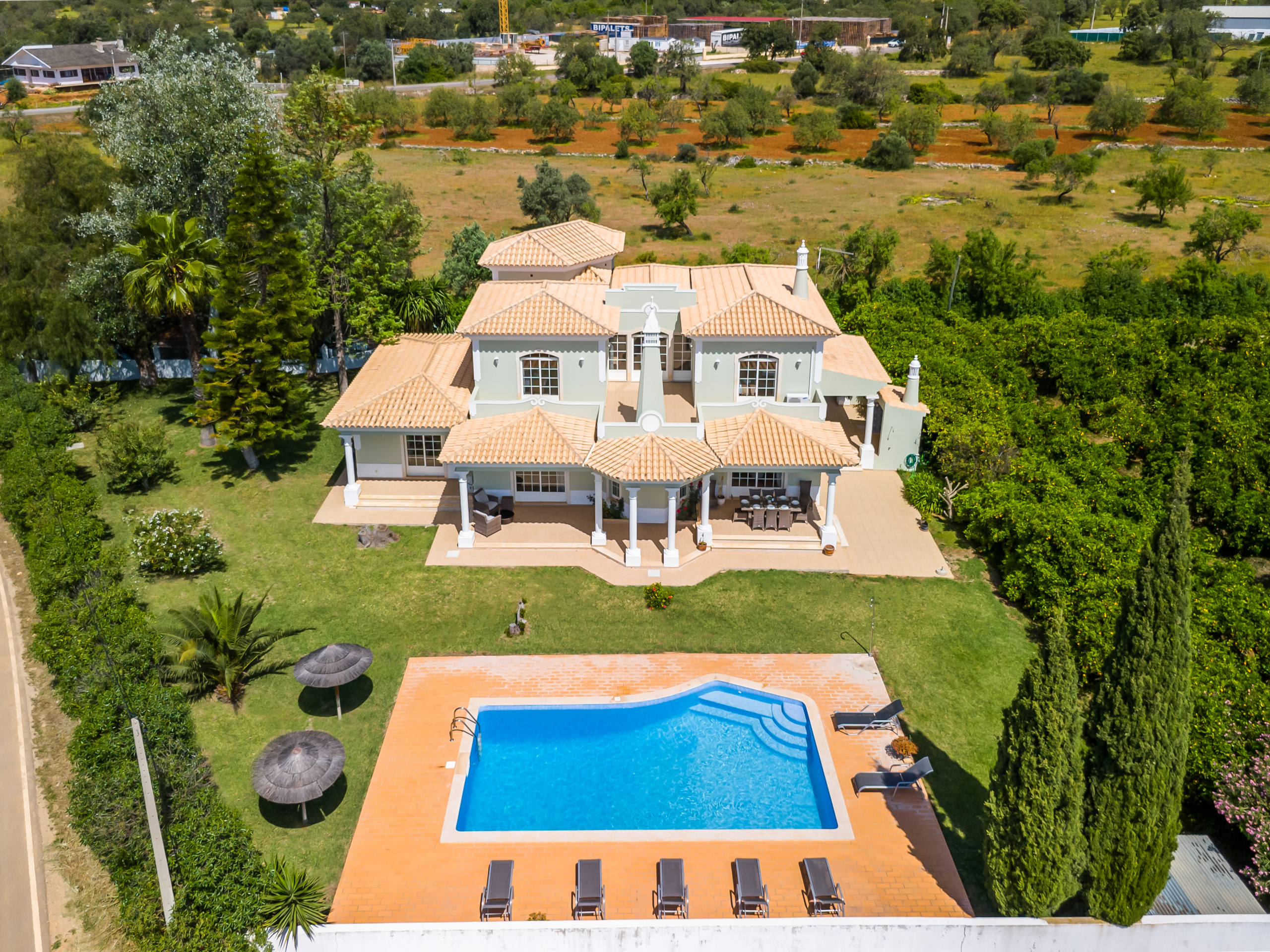 Large property in rural setting with a lovely size pool. Busy road, car is absolutely essential. Plenty of seating areas.