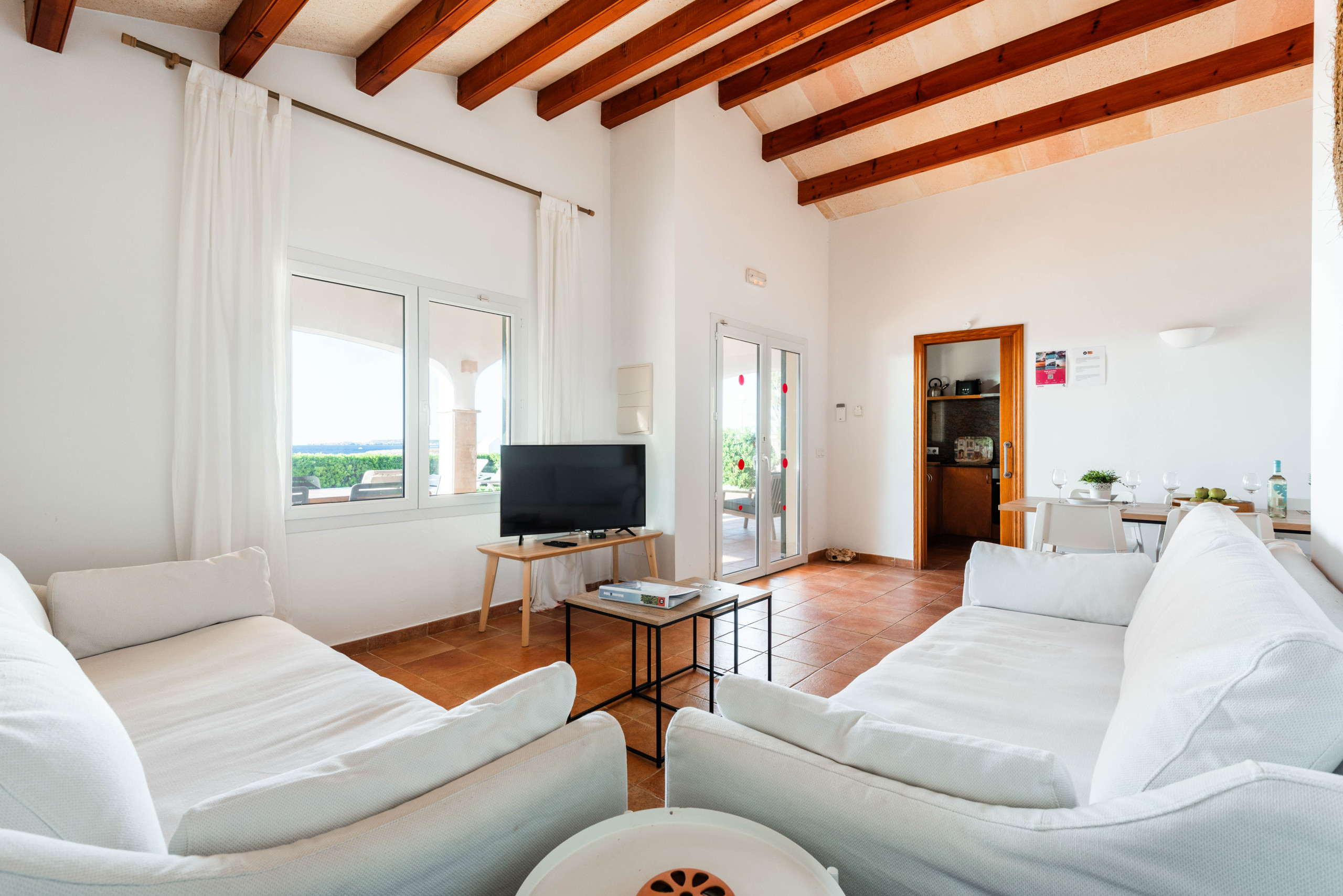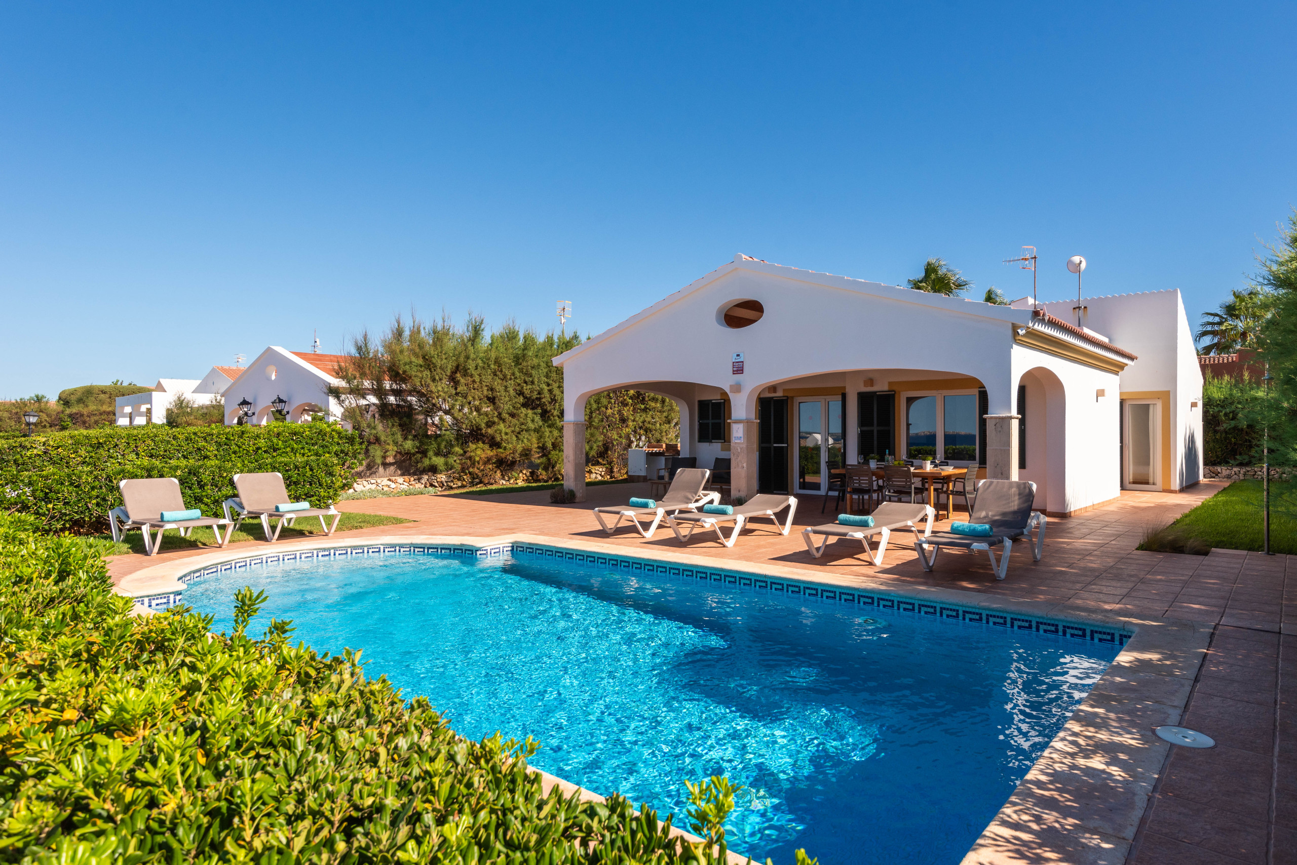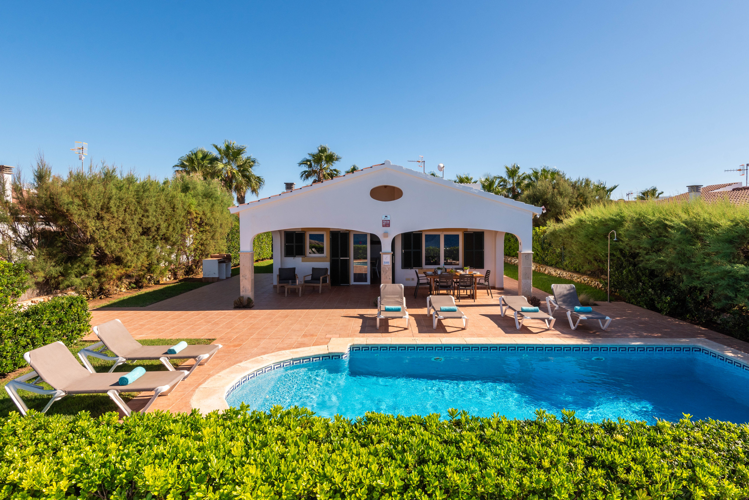 La villa est située dans un endroit superbe et calme, à deux pas du port de plaisance animé de Calan Bosch, avec ses nombreux bars et restaurants et ses deux plages de sable blanc.
